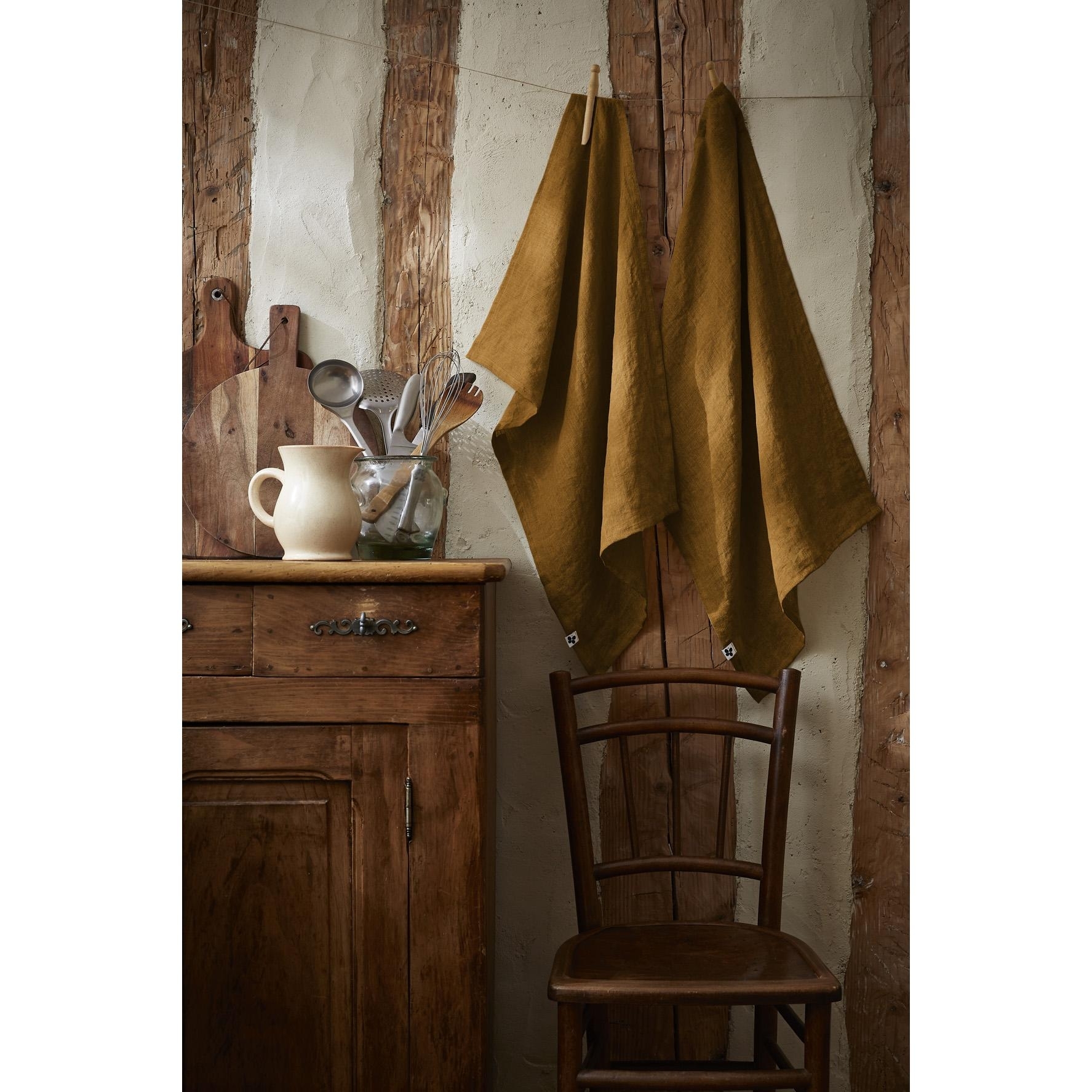 Lot de 2 essuie-vaisselle lin lavé 50 x 70 cm soline caramel