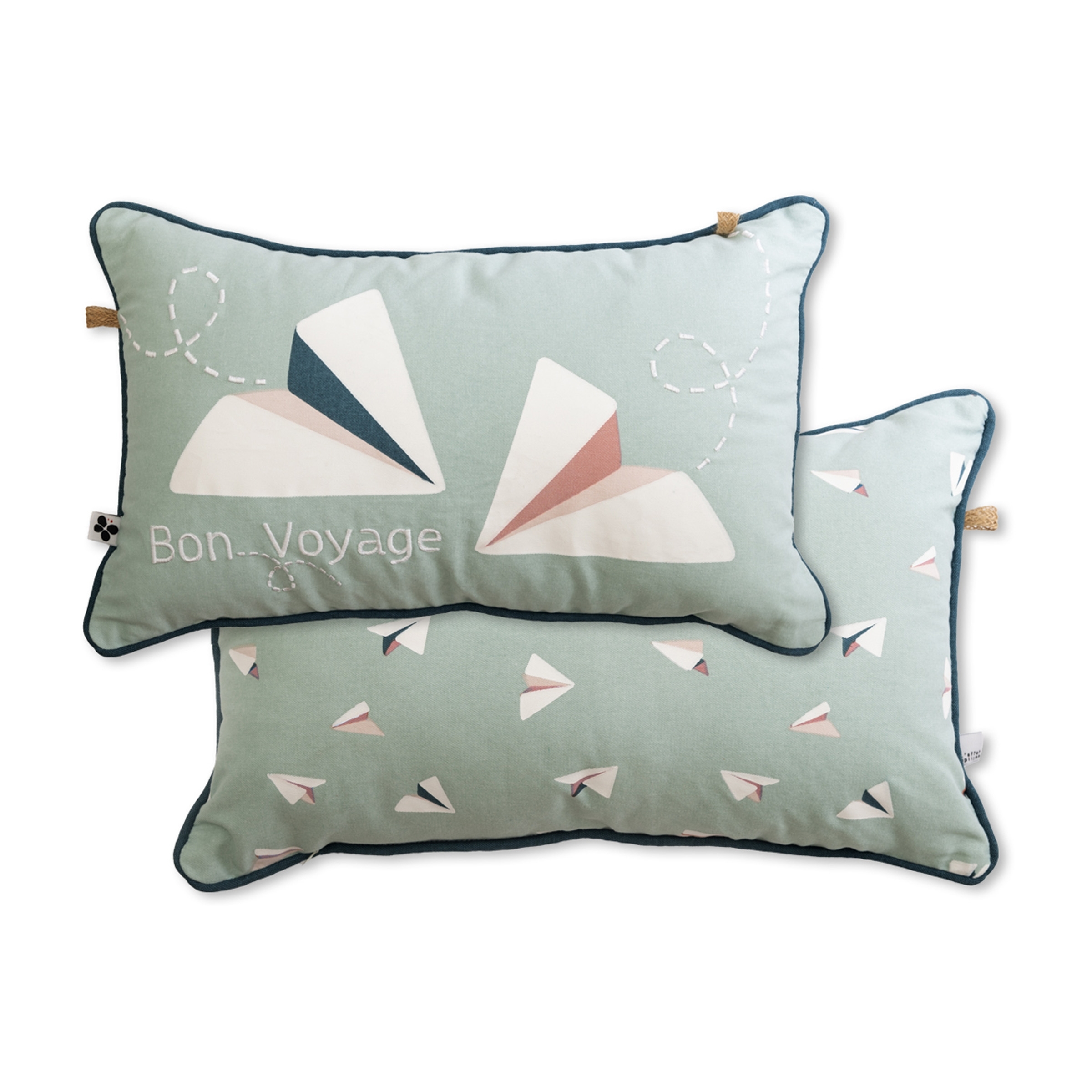 - Motif : avions en papier et message “Bon Voyage”