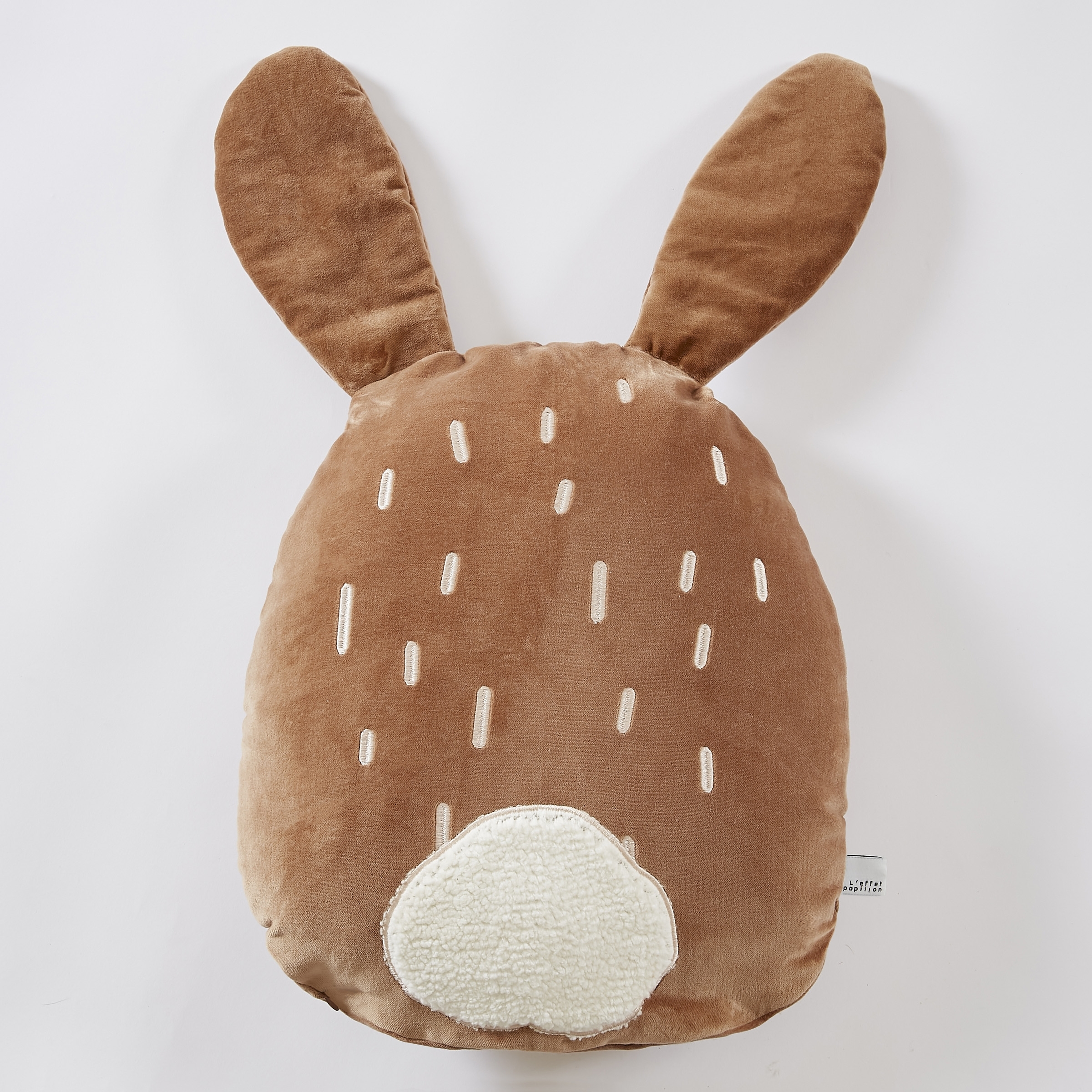 En forme de petit lapin, ce coussin à la texture veloutée et moelleuse séduit autant les enfants que les parents. Ses grandes oreilles toutes douces et ses détails brodés apportent une note attendrissante et chaleureuse.
