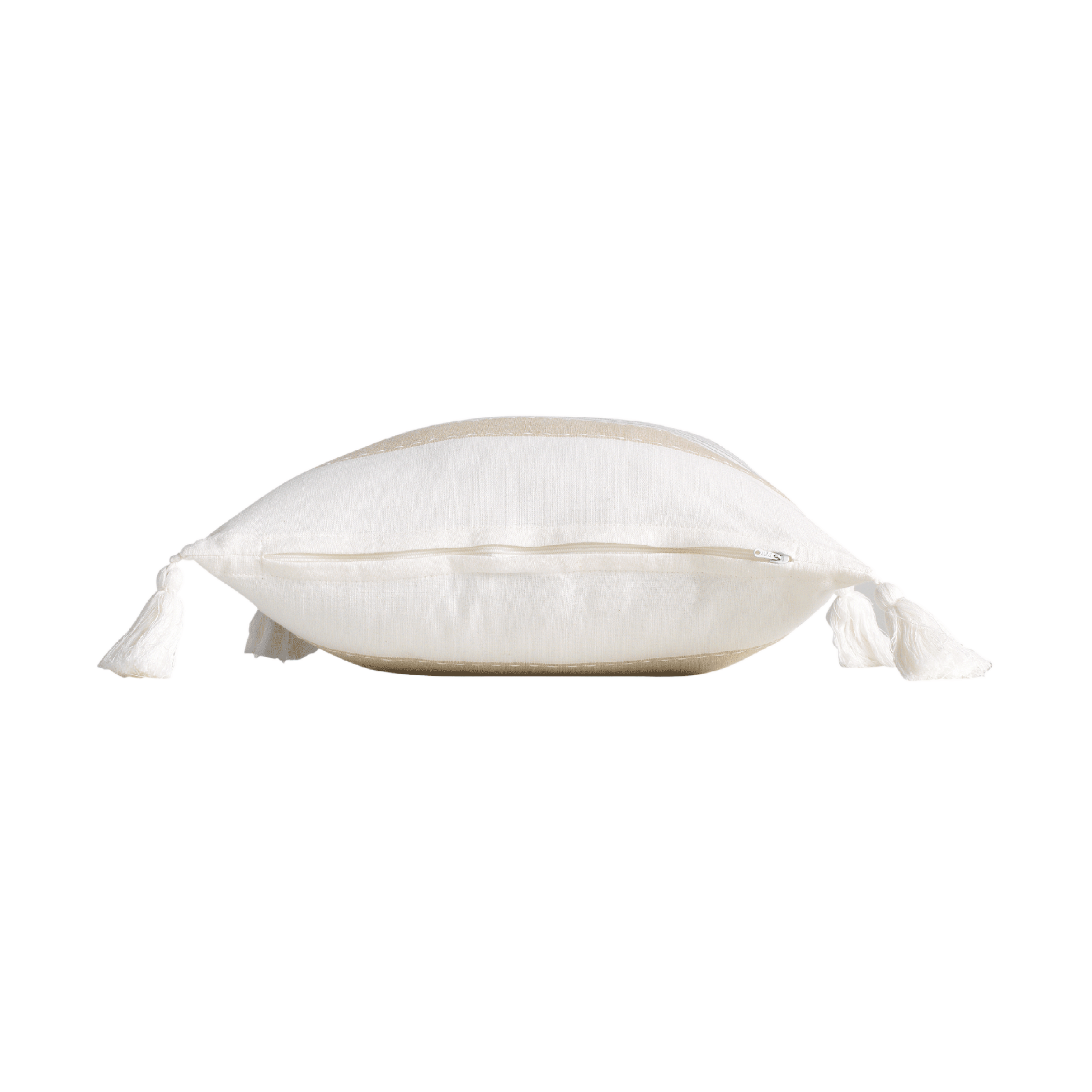 Apportez une note douce et lumineuse à votre décoration avec le coussin ILLIADE. Confectionné en coton imprimé, il séduit par son jeu de rayures délicates, ses tons naturels et ses pompons aux angles, qui lui donnent un style bohème chic et intemporel.