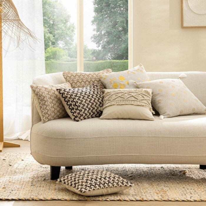 Ajoutez une touche contemporaine et élégante à votre décoration avec le coussin Loumeo Noir. Son motif fantaisie, enrichi de fils métallisés subtils, offre une finition chic et moderne, parfaite pour sublimer votre espace intérieur.