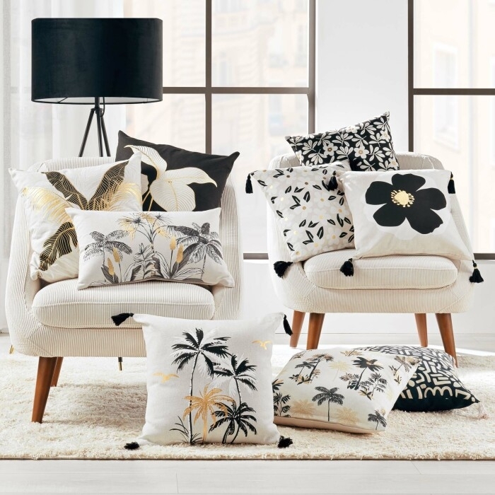 Coussin dehoussable 45 x 45 cm coton imprime or Jill