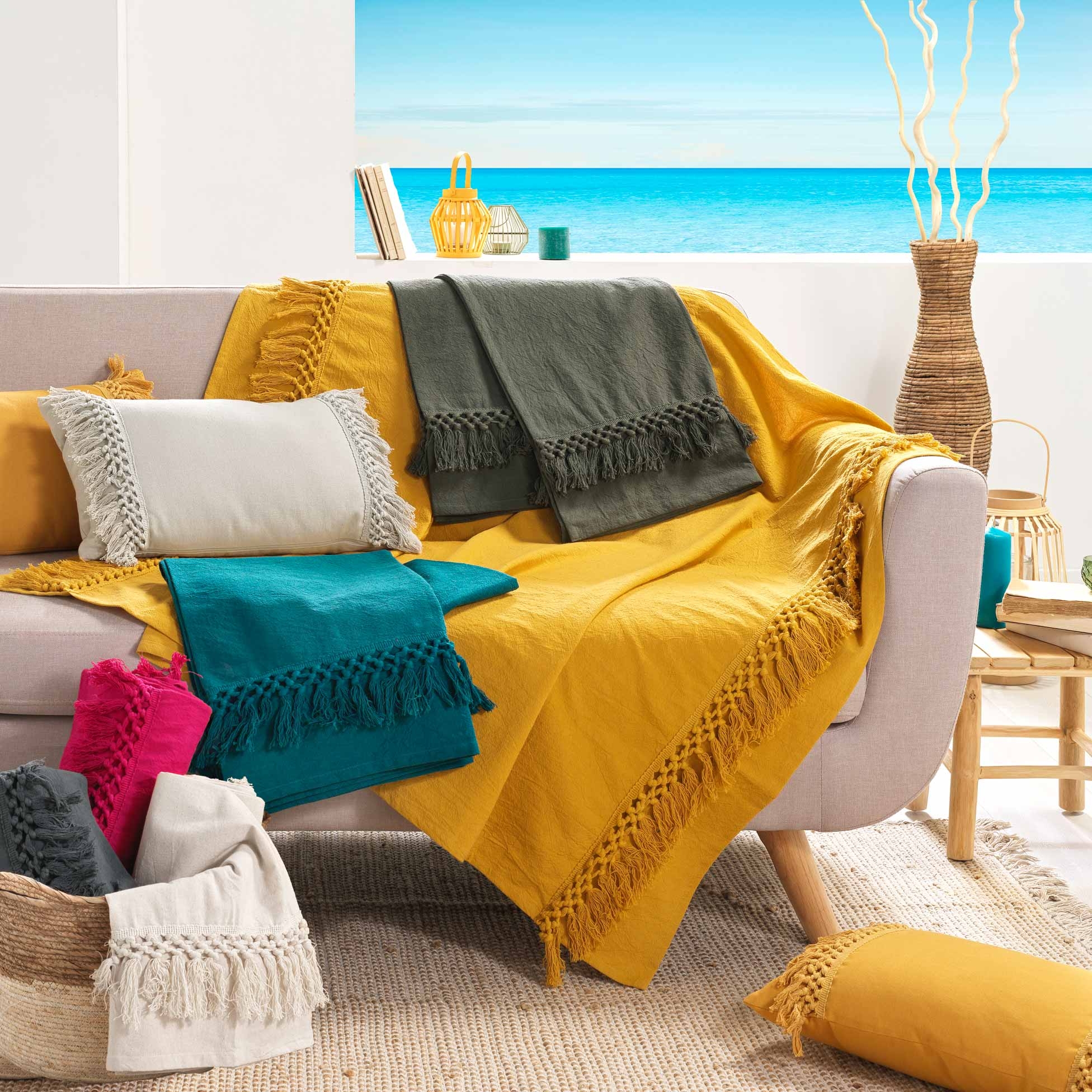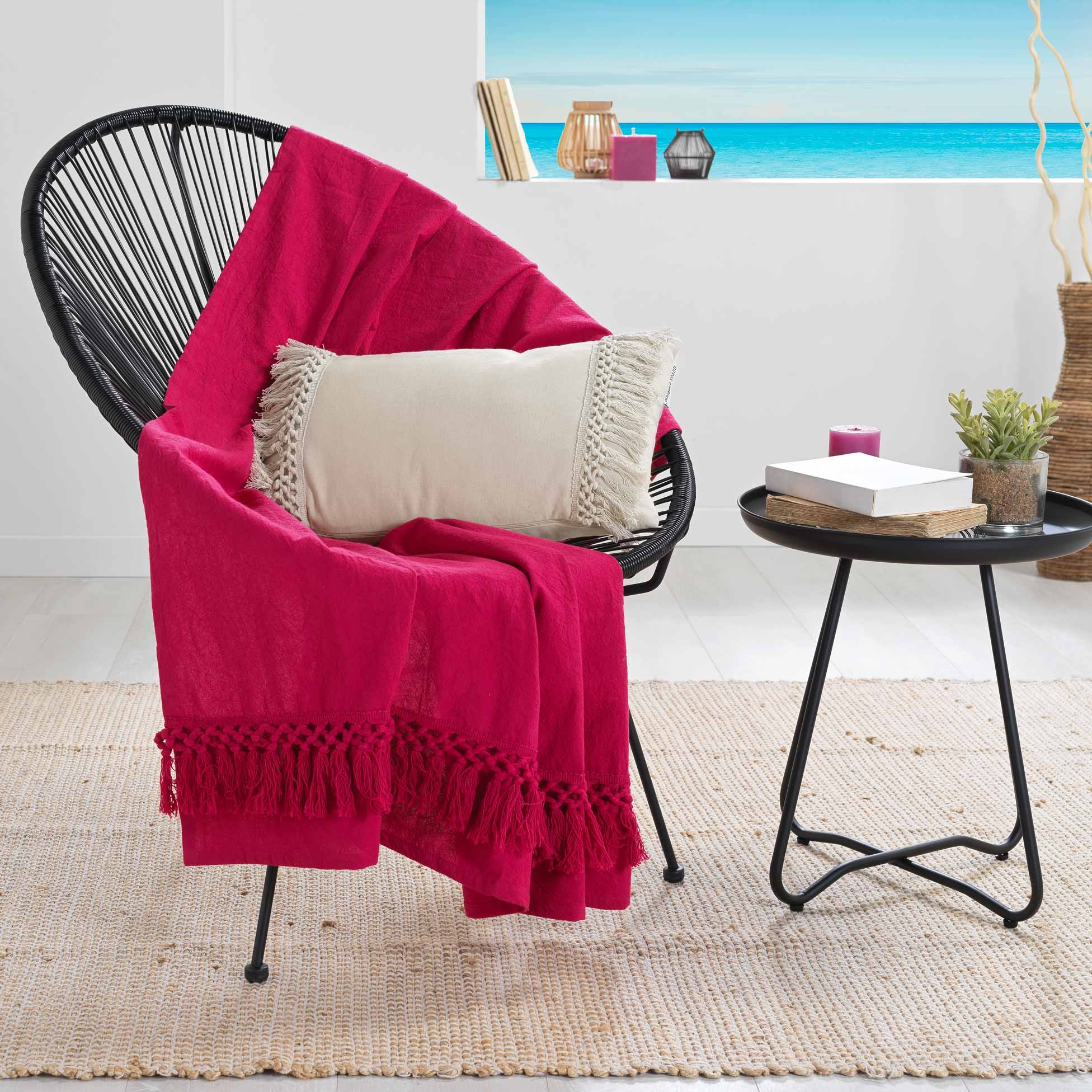 Sa couleur framboise intense dynamise votre intérieur tandis que les franges délicatement tressées apportent une finition artisanale tendance. Un essentiel déco à la fois chaleureux, moderne et original.