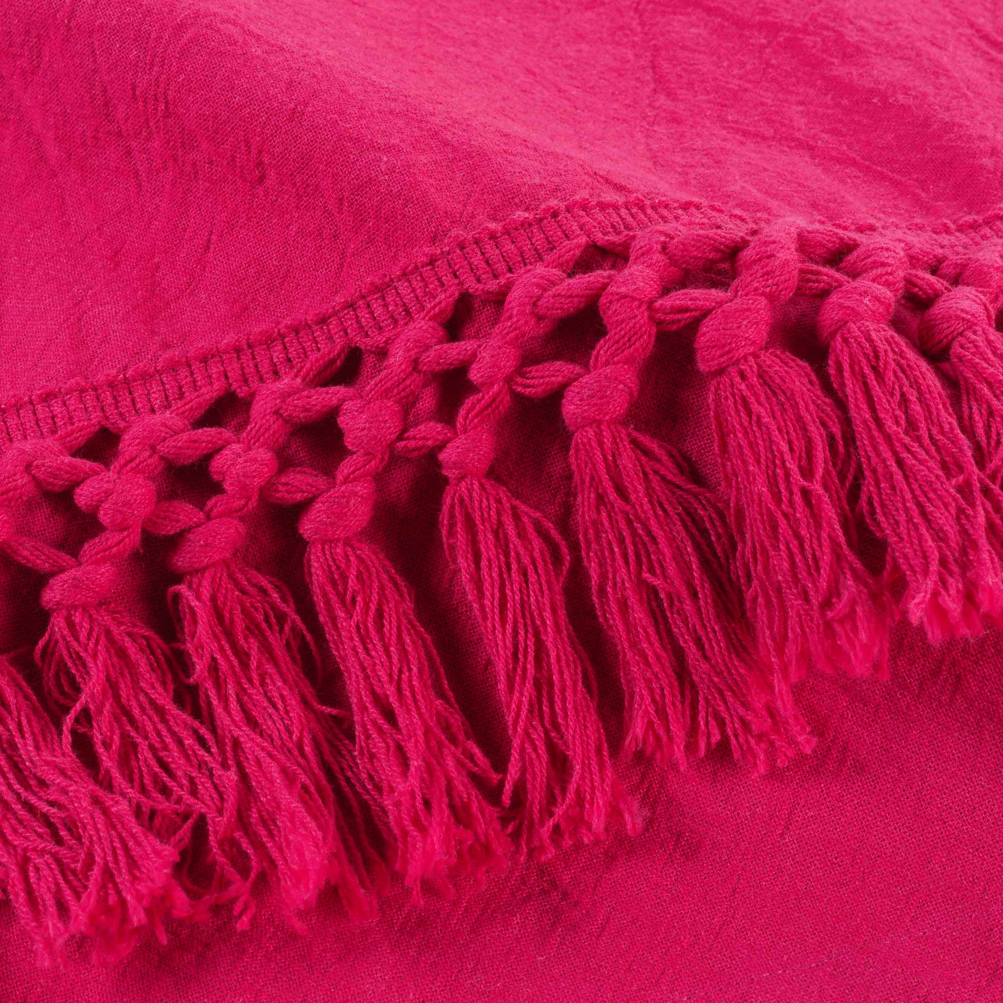 Couvre-lit 1 personne 180 x 220 cm – Coton uni à franges SALMA Framboise