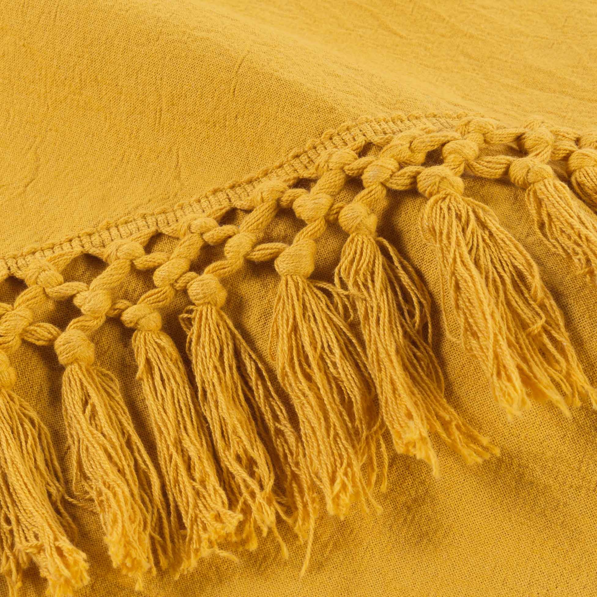 Couvre-lit 1 personne 180 x 220 cm – Coton uni à franges SALMA Jaune