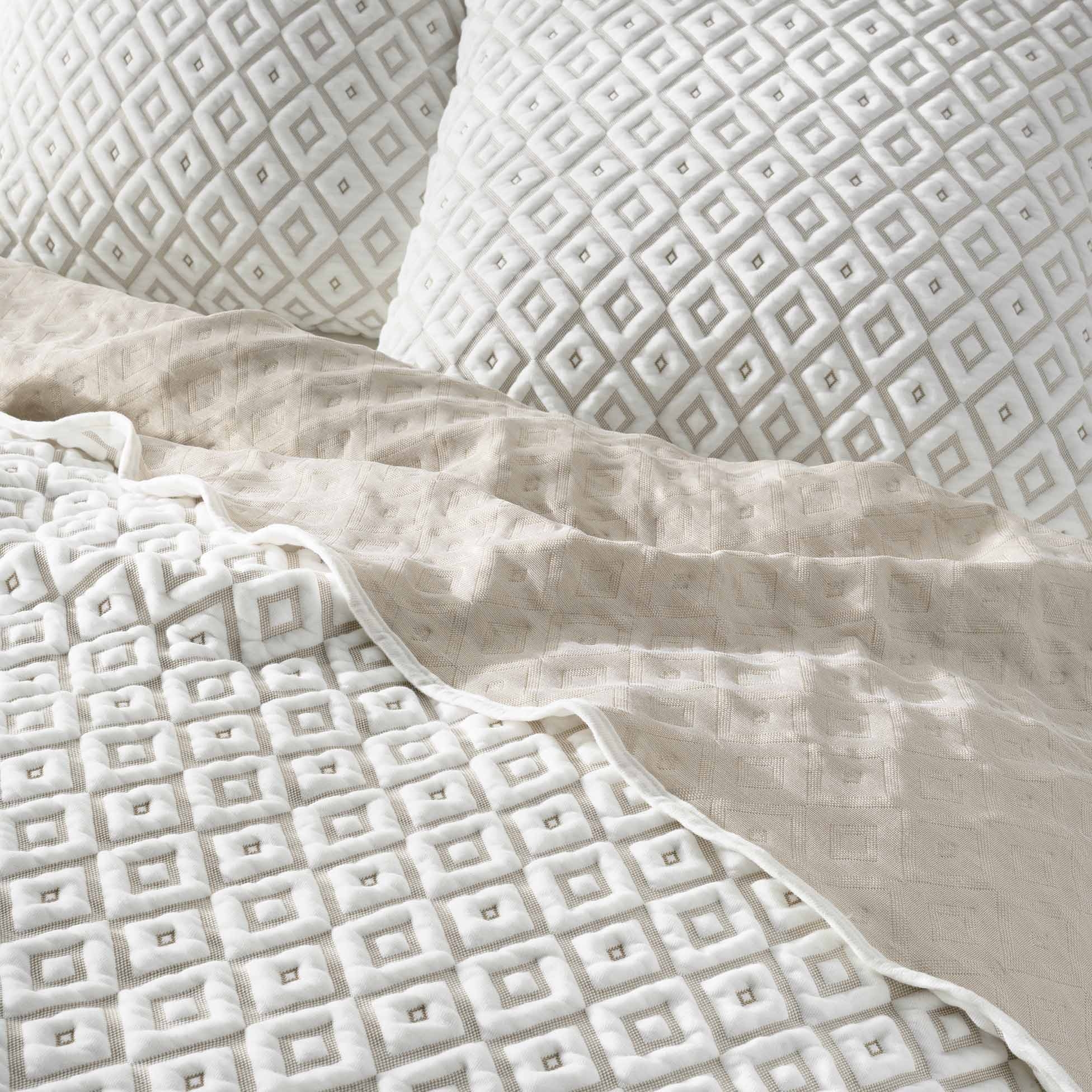 Apportez élégance et modernité à votre chambre avec le couvre-lit JOANA. Son motif géométrique en relief crée un effet matelassé raffiné qui structure le lit avec subtilité. Son coloris doux et lumineux s’intègre parfaitement dans une décoration contemporaine, scandinave ou naturelle.