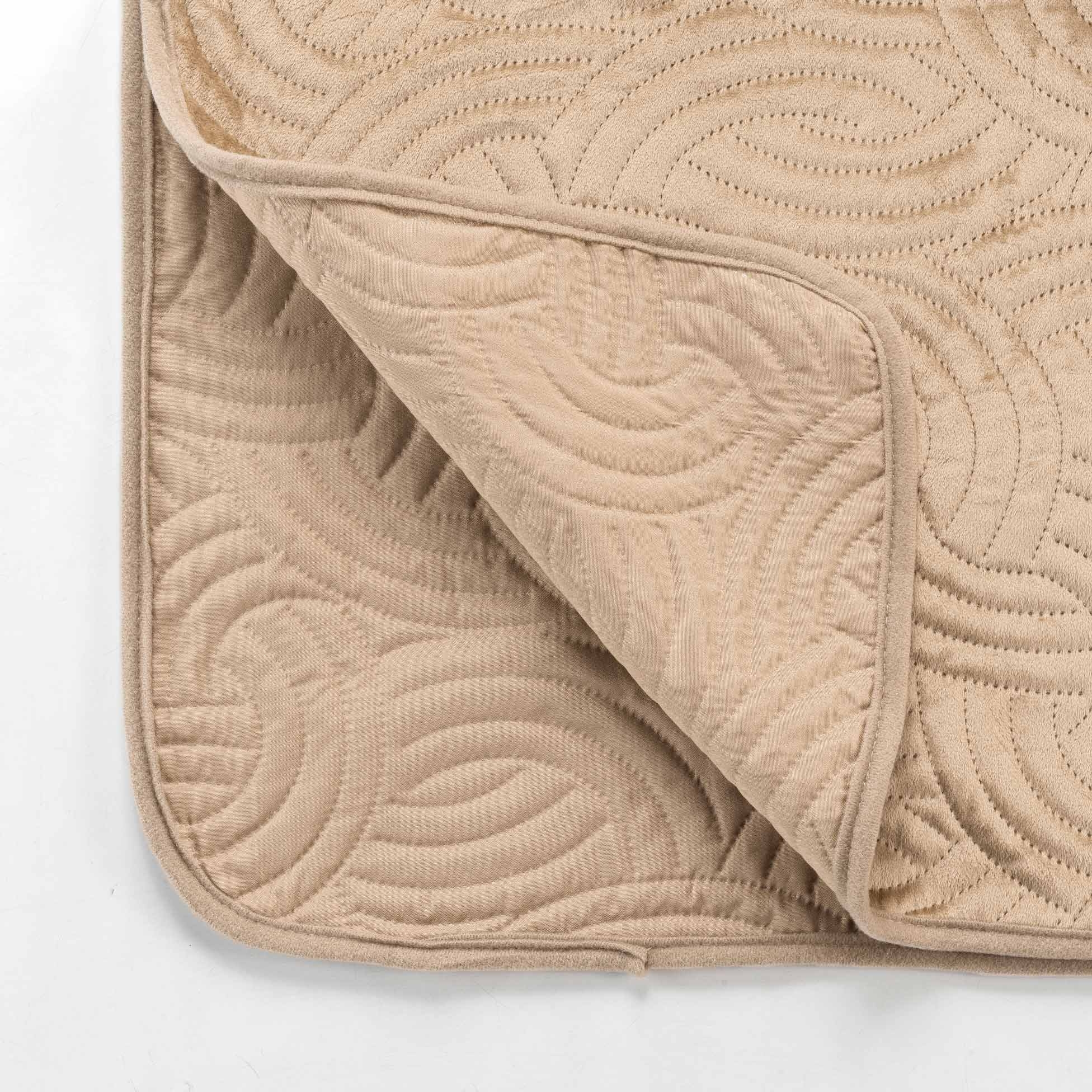 Couvre-lit 240x260 cm + 2 housses de coussin 60x60 cm – Velours uni matelassé SOLANGE Beige