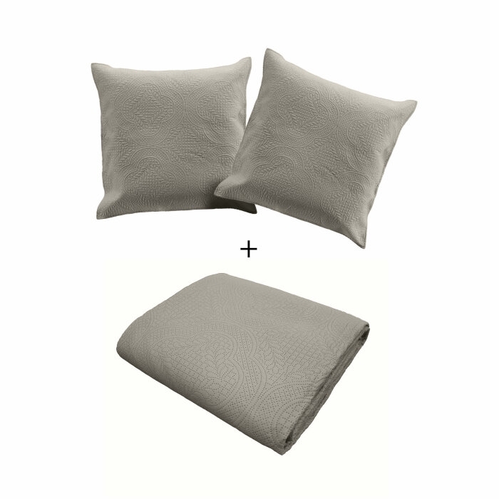 Couvre-Lit Matelassé (220 x 240 cm) et 2 Taies d'Oreiller (60 x 60 cm) Romane Gris, Microfibre Unie