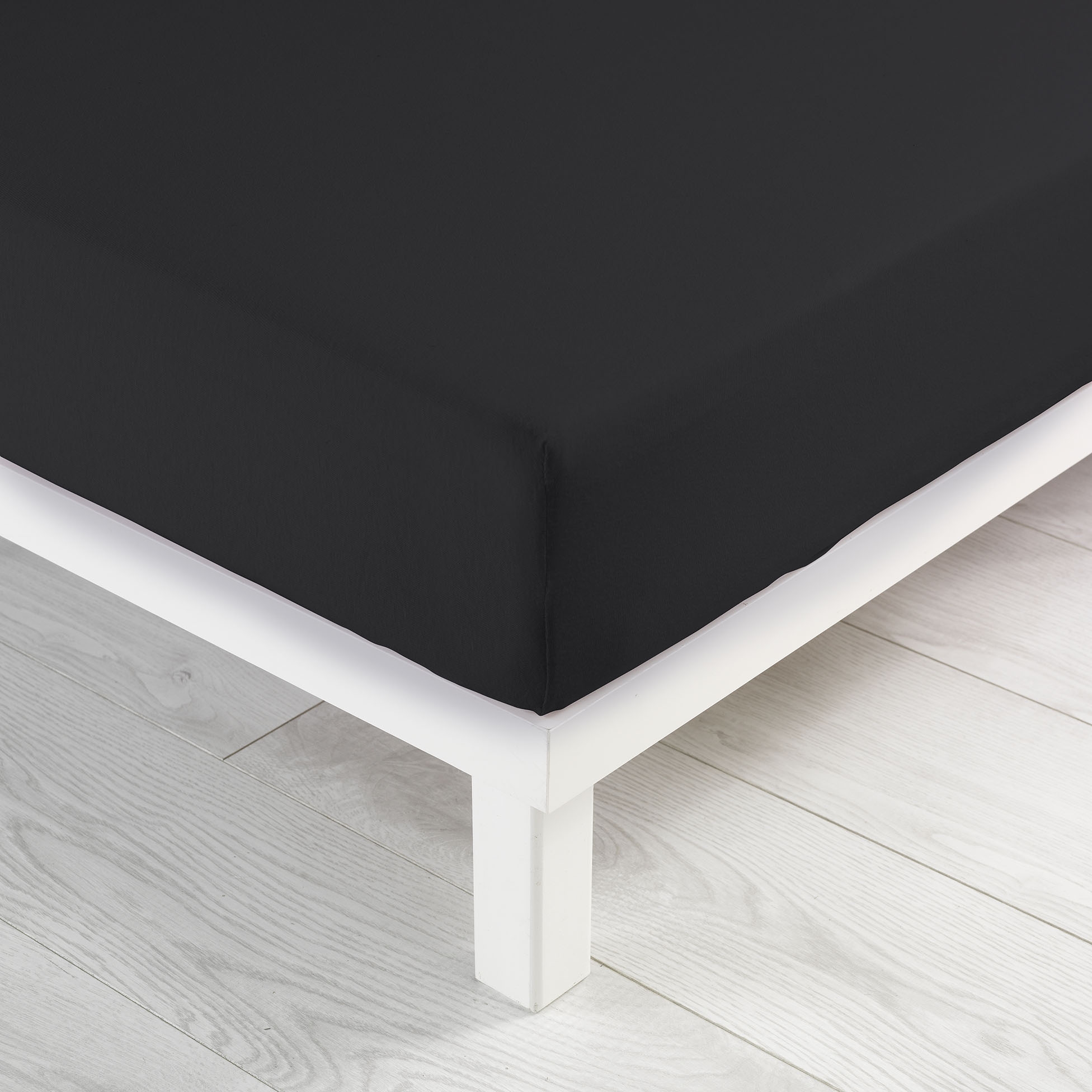 Drap-housse 160x200 cm – 100% coton jersey extensible – Bonnet 30 cm – Noir