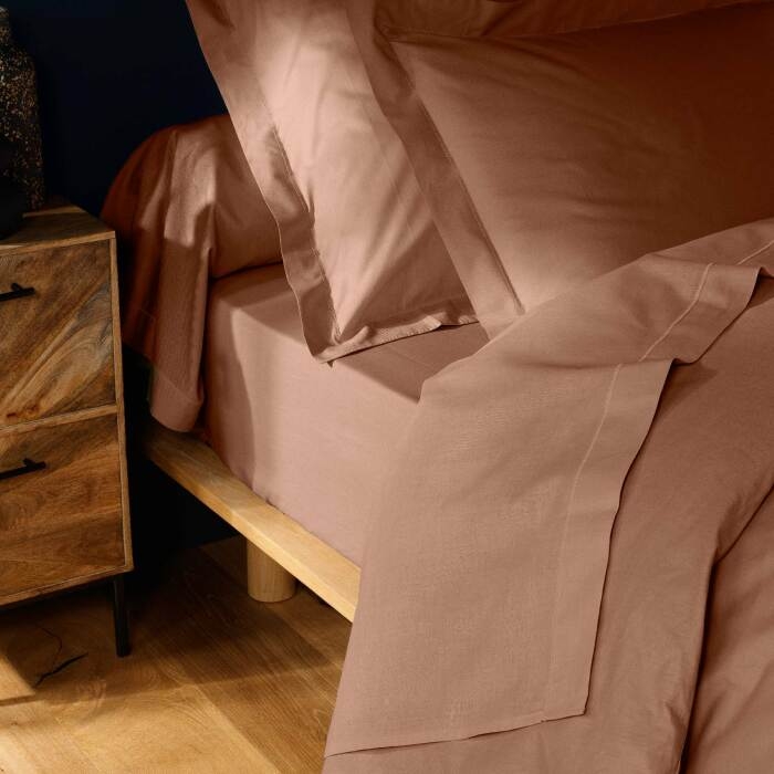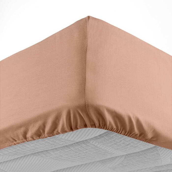 Drap-housse 2 personnes 140 x 190 cm coton 57 fils LINA Blush – Bonnet 30 cm