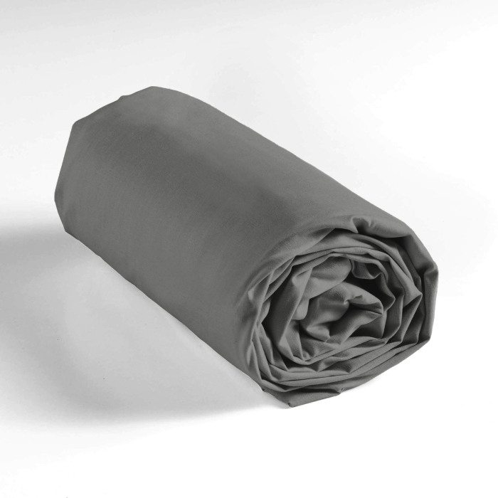 Drap housse 2 personnes 160 x 200 cm uni 57 fils lina Anthracite