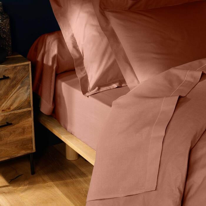 Drap-housse 2 personnes 180 x 200 cm coton 57 fils LINA Blush– Bonnet 30 cm