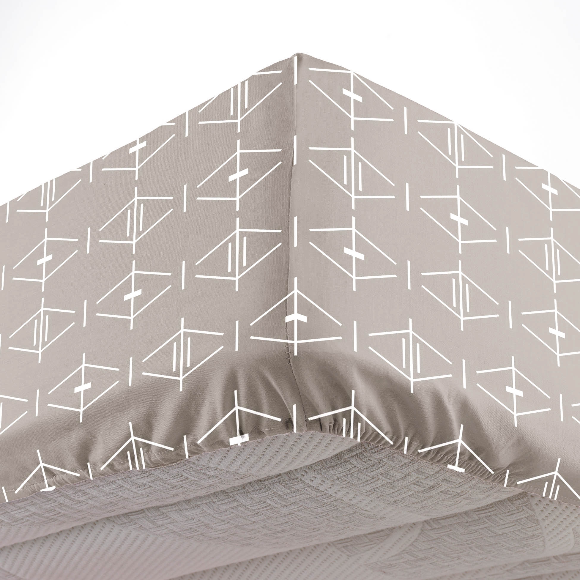 Drap-Housse 90 x 190 cm – Coton 57 Fils – Bonnet 30 cm – Naturel Motif Géométrique
