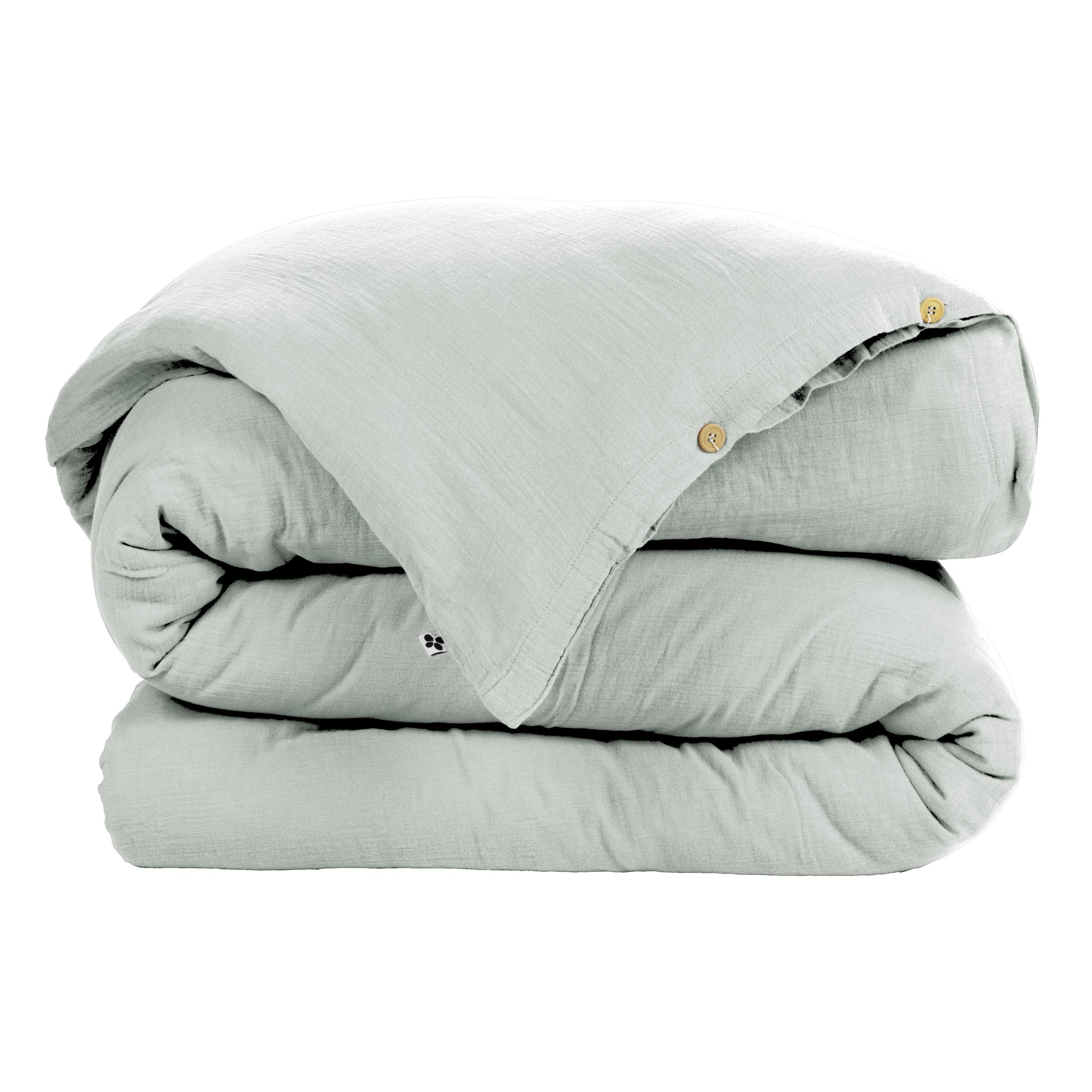 Housse de couette 2 personnes 240x220 cm – Double gaze de coton Luxe – Eucalyptus – Gaïa