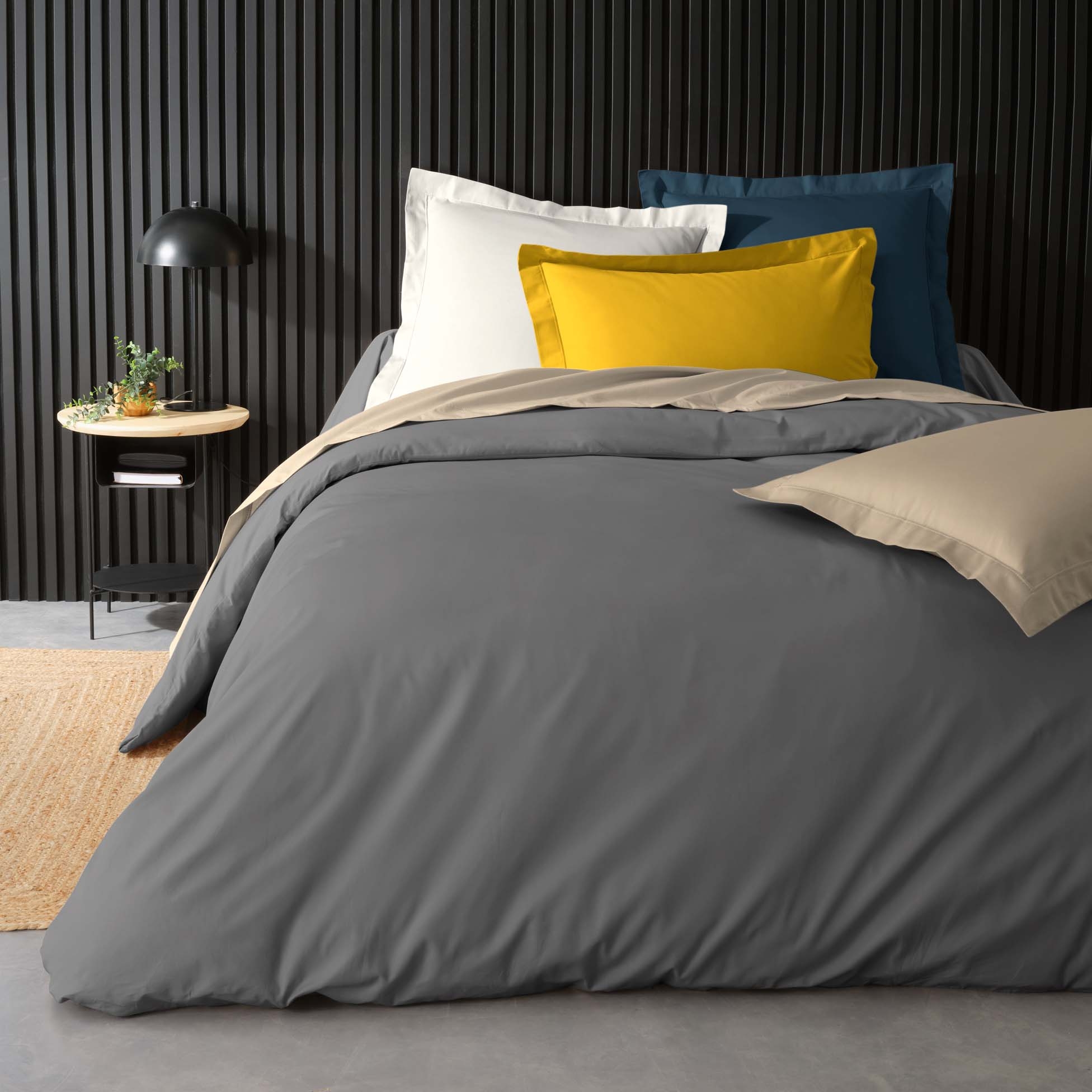 Housse de couette 2 personnes 260 x 240 cm – Percale de coton 78 fils – Sable