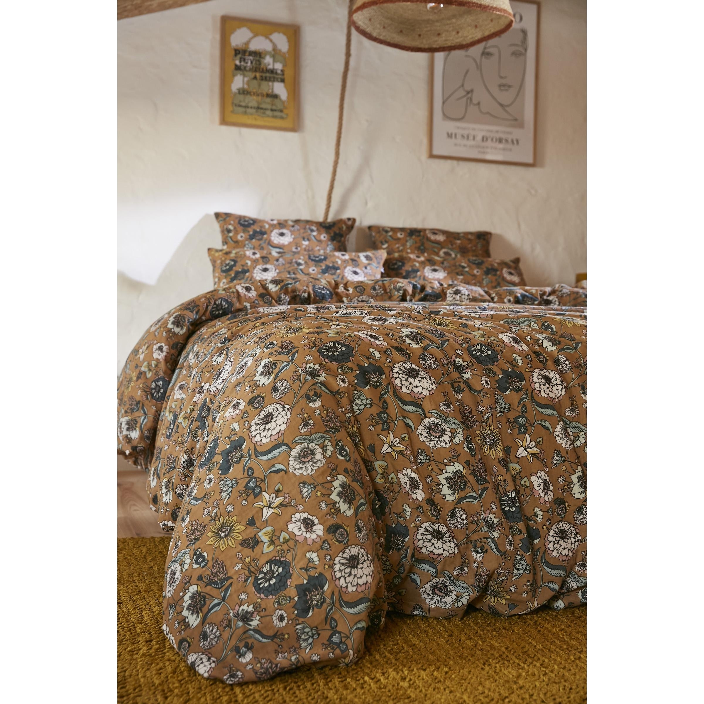 Housse de couette 200 x 200 cm double gaze de coton imprimée Camélia
