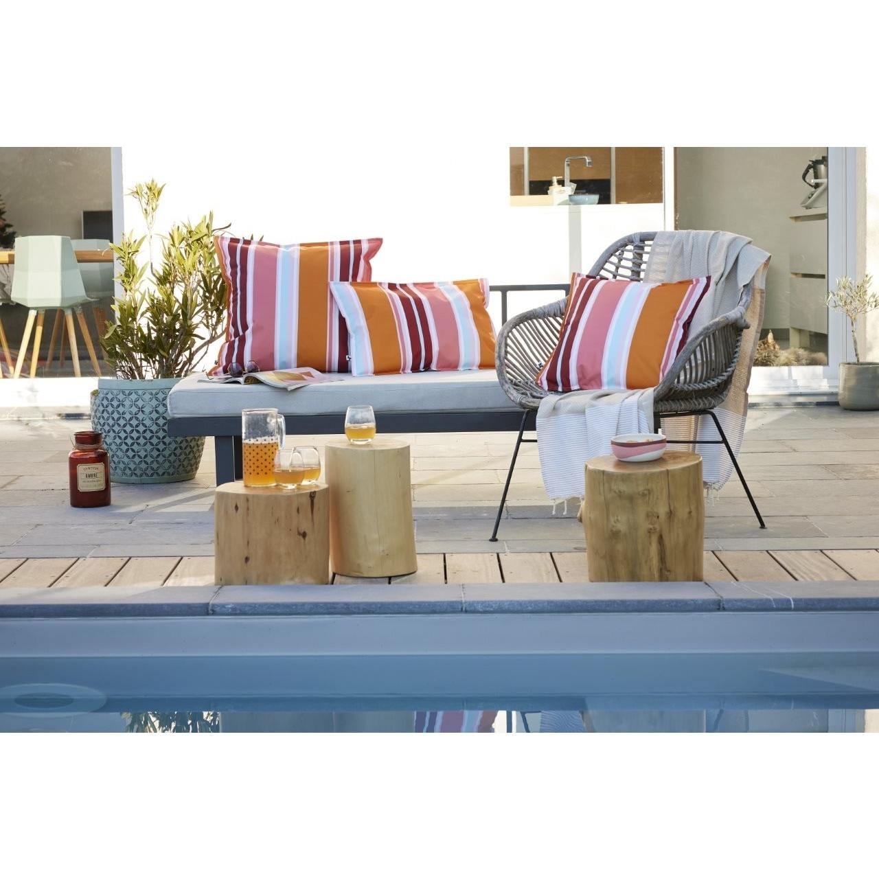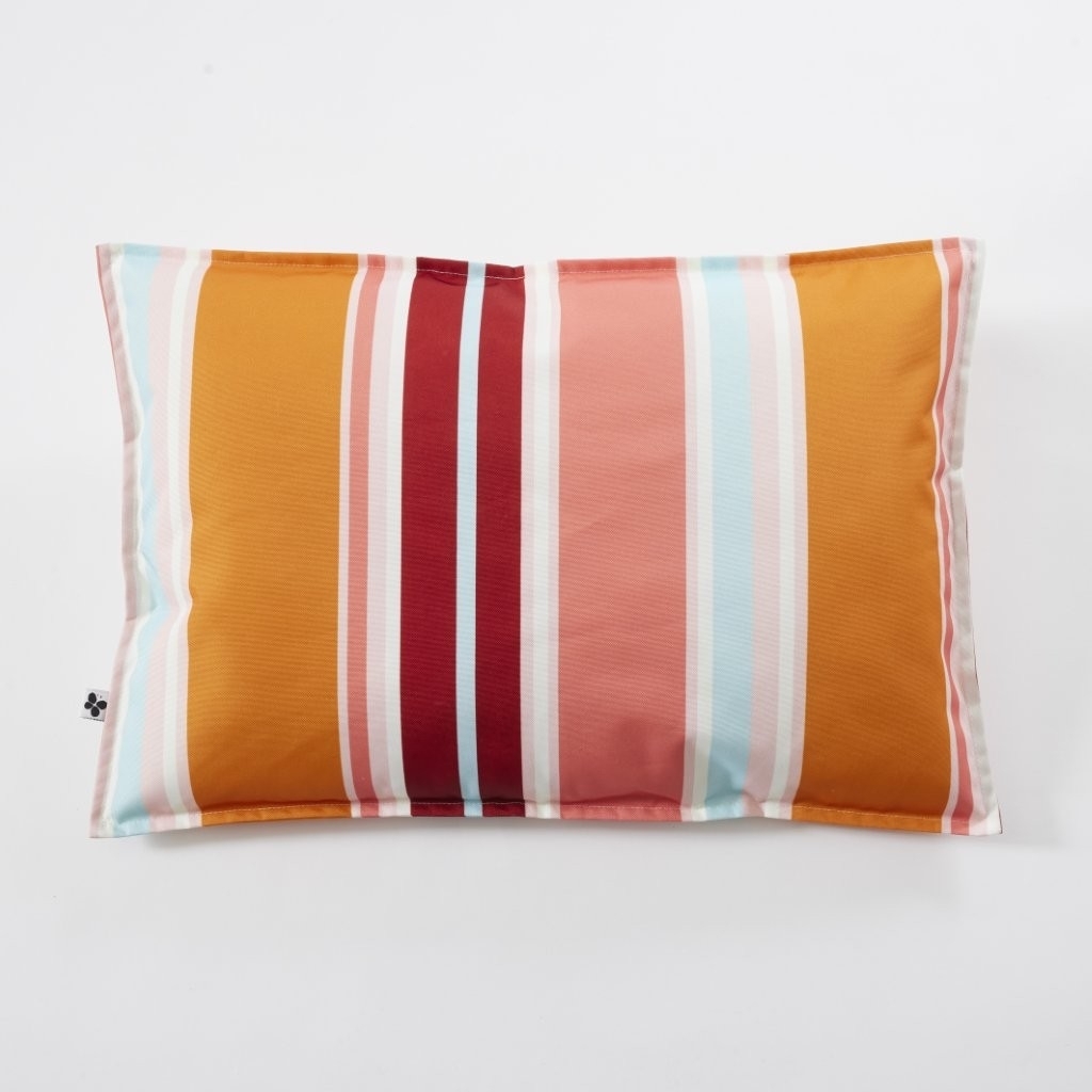 Apportez une explosion de couleurs à votre décoration extérieure avec la housse de coussin Bianca. Son motif à rayures vives orange, rose, bleu ciel et bordeaux dynamise instantanément votre mobilier de jardin ou de terrasse. Confectionnée en polyester imprimé avec enduction, elle allie style et fonctionnalité. Traitée anti UV.