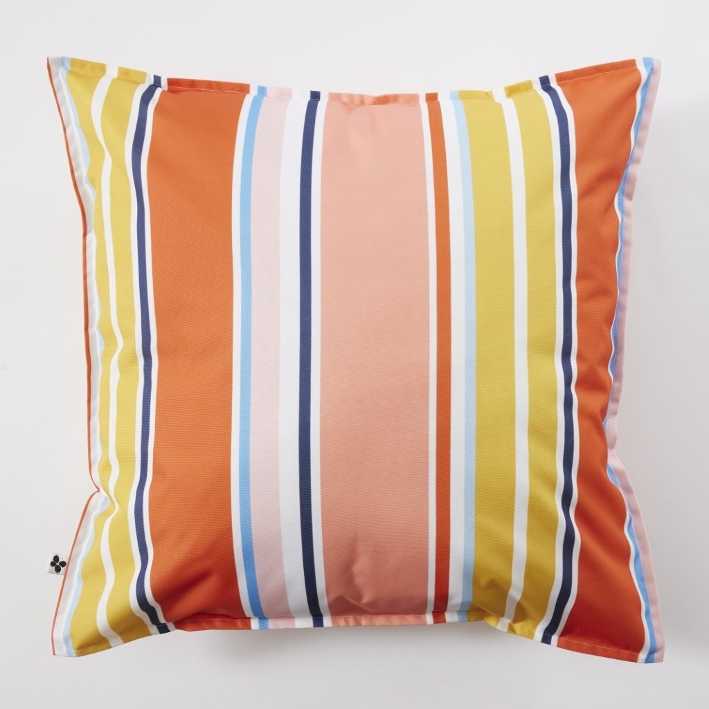 Apportez une explosion de couleurs à votre décoration extérieure avec la housse de coussin Bianca. Son motif à rayures vives orange, rose et bleu ciel dynamise instantanément votre mobilier de jardin ou de terrasse. Confectionnée en polyester imprimé avec enduction, elle allie style et fonctionnalité. Traitée anti UV.