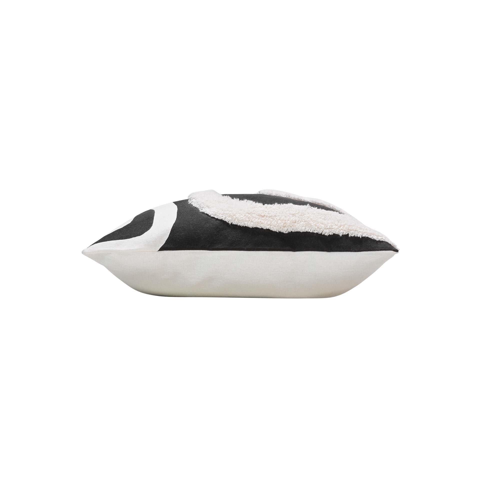 Apportez une touche graphique et chaleureuse à votre décoration avec cette housse de coussin Mirade. Son imprimé noir et blanc, rehaussé de motifs tuftés en relief, crée un contraste dynamique et moderne. Idéale pour un intérieur bohème, contemporain ou naturel.