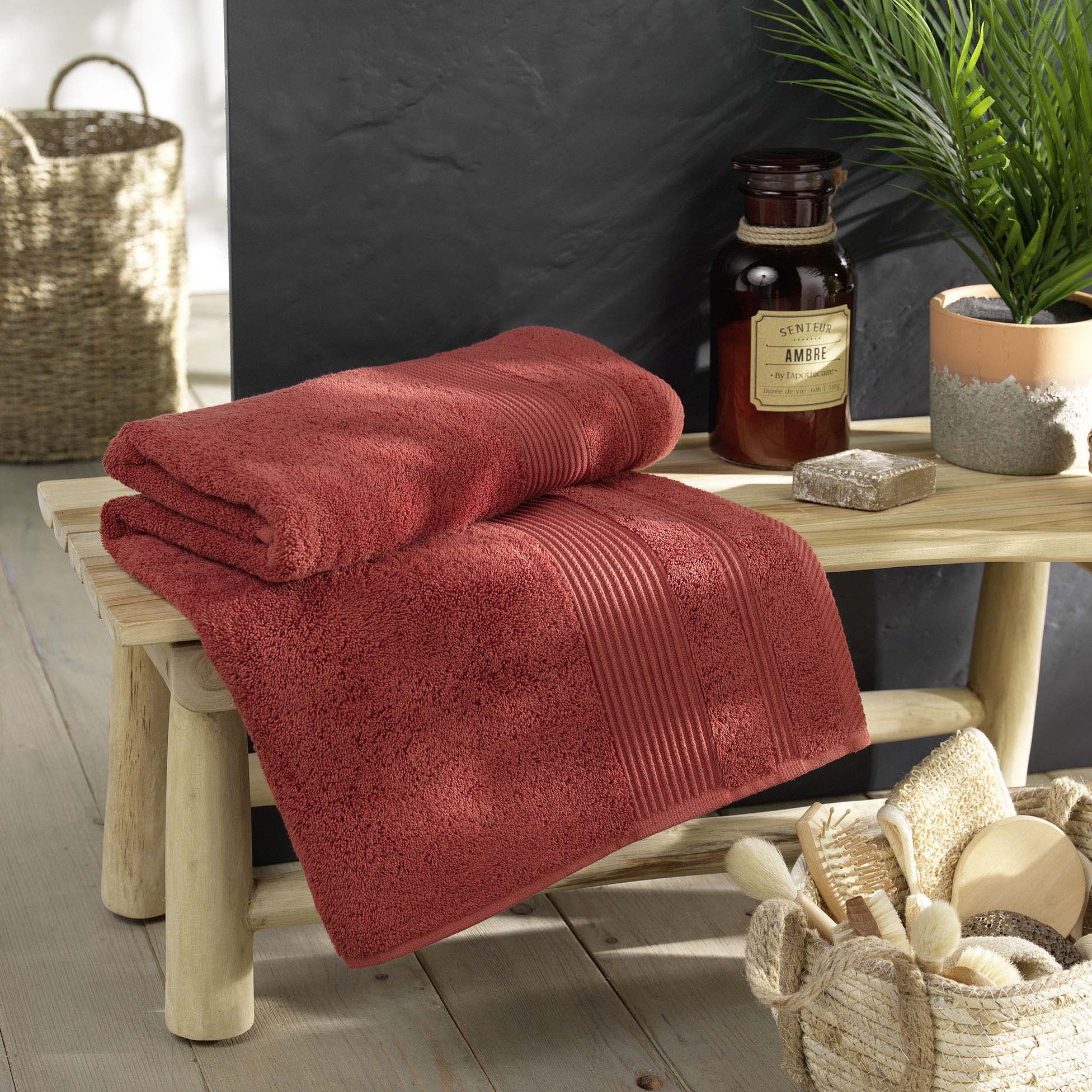 Drap de bain 90 x 150 cm – Coton éponge uni Tendresse Terracotta – 500 g/m²