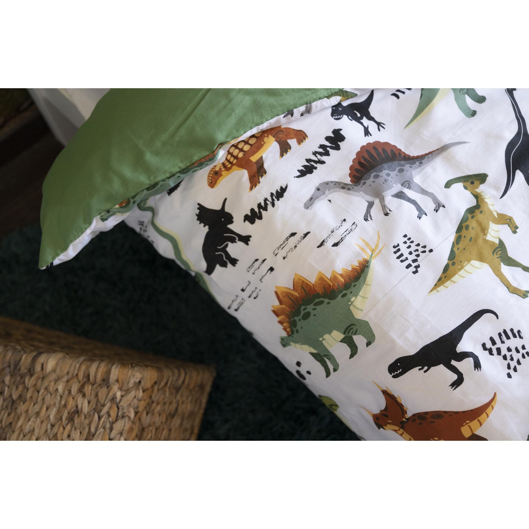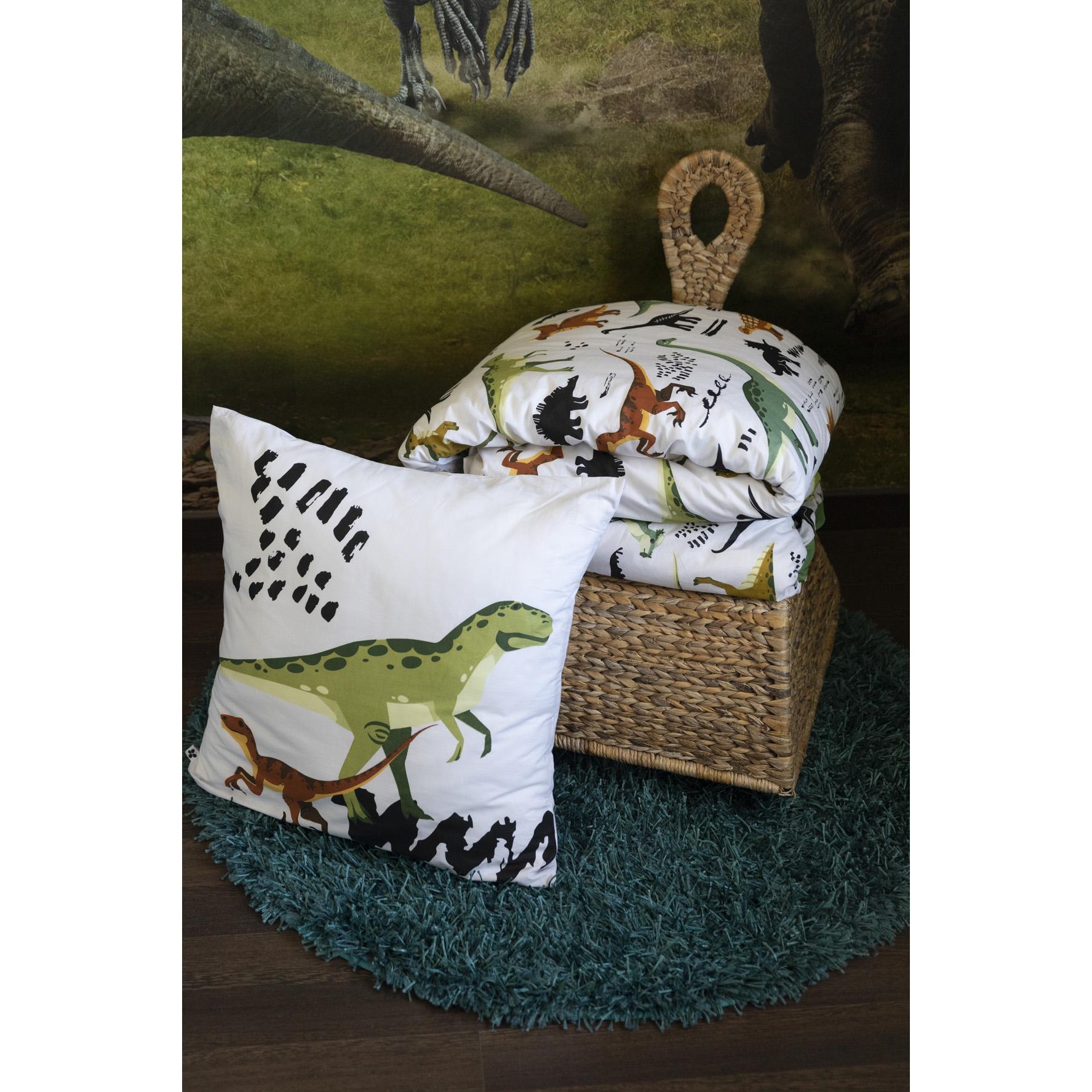 Faites rugir l’imagination de votre enfant avec cette housse de couette au design jurassique ! Un motif ludique et coloré peuplé de dinosaures mythiques qui transforme chaque coucher en véritable aventure préhistorique.