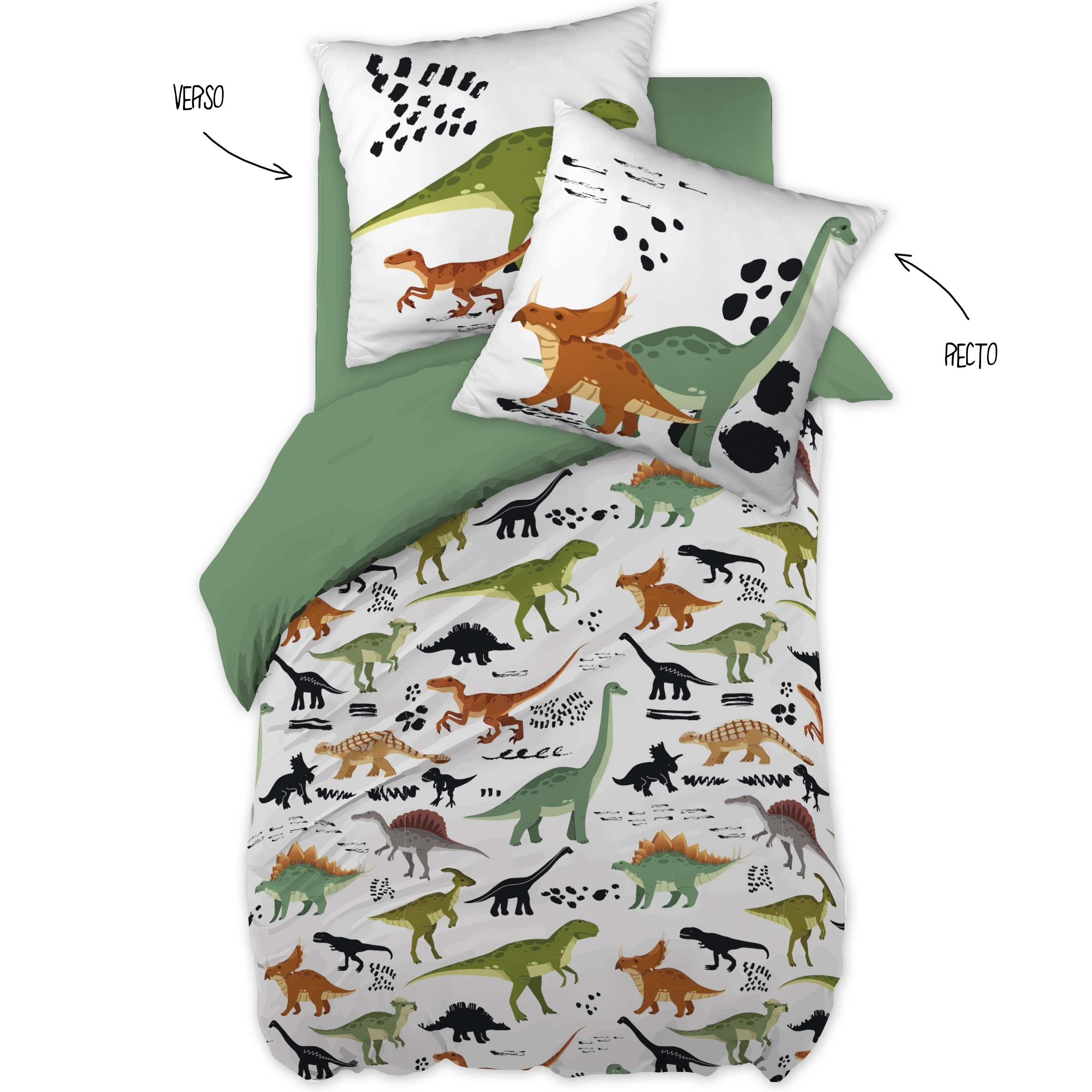 Housse de couette enfant 140 x 200 cm – Thème Dinosaures – Coton doux