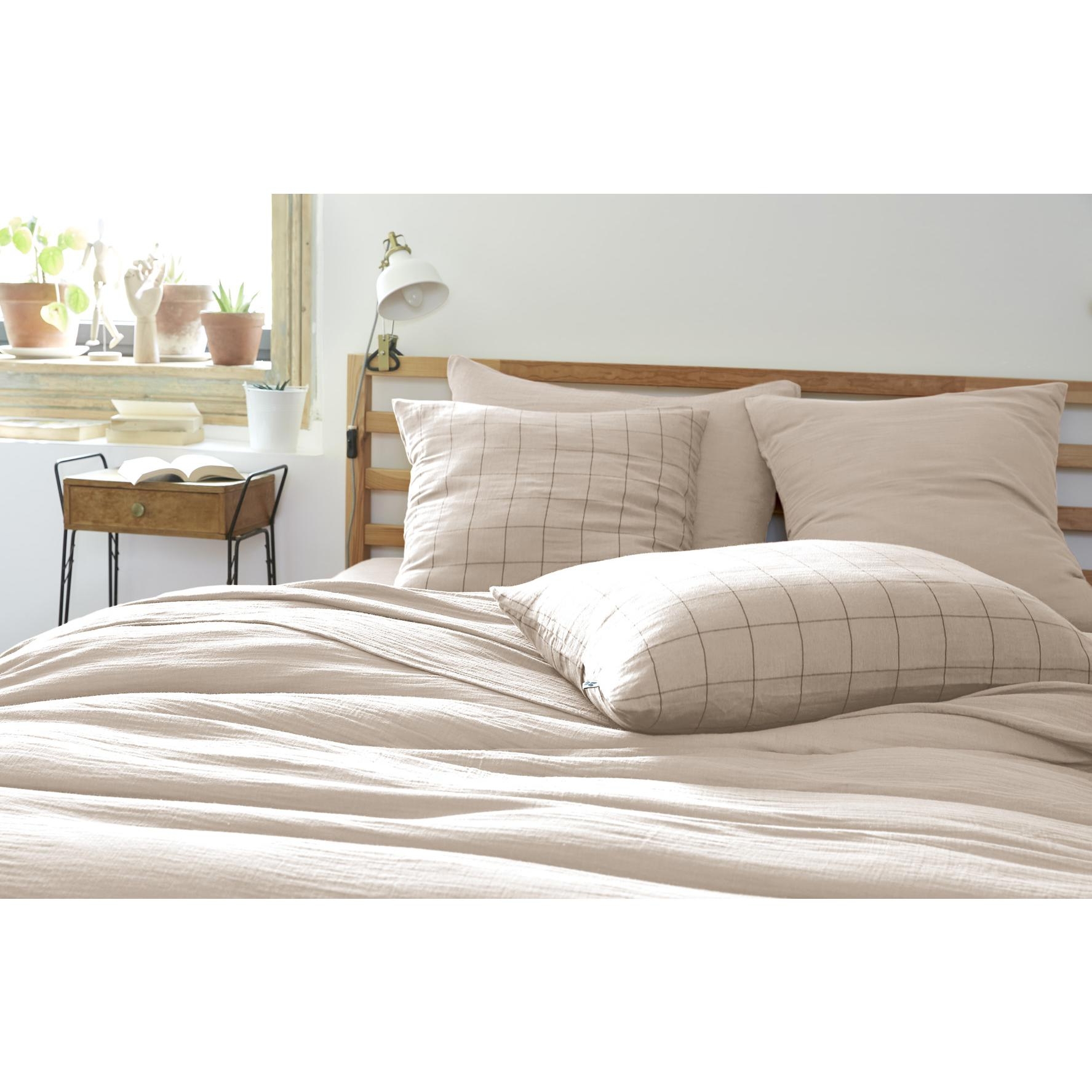 Légère, respirante et douce, cette taie d’oreiller assure un confort optimal tout au long de la nuit. La gaze de coton tissée offre un aspect légèrement froissé très tendance, sans besoin de repassage.
