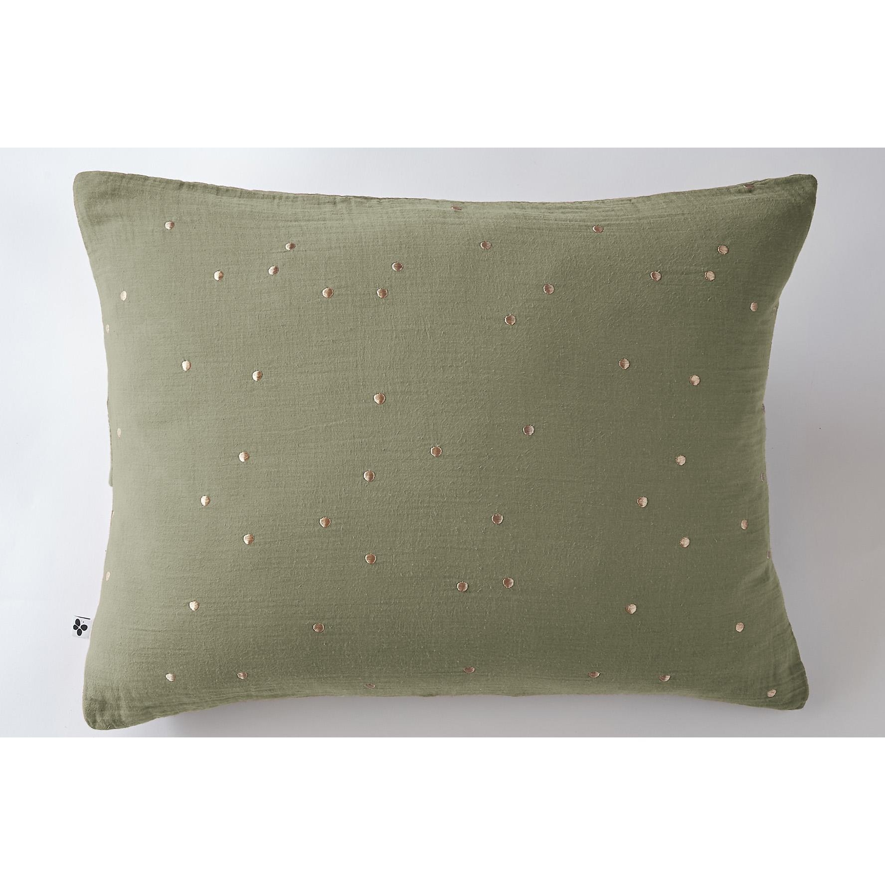 Taie d'oreiller gaze de coton brodée fil or 50 x 70 cm Gaia Chic Romarin