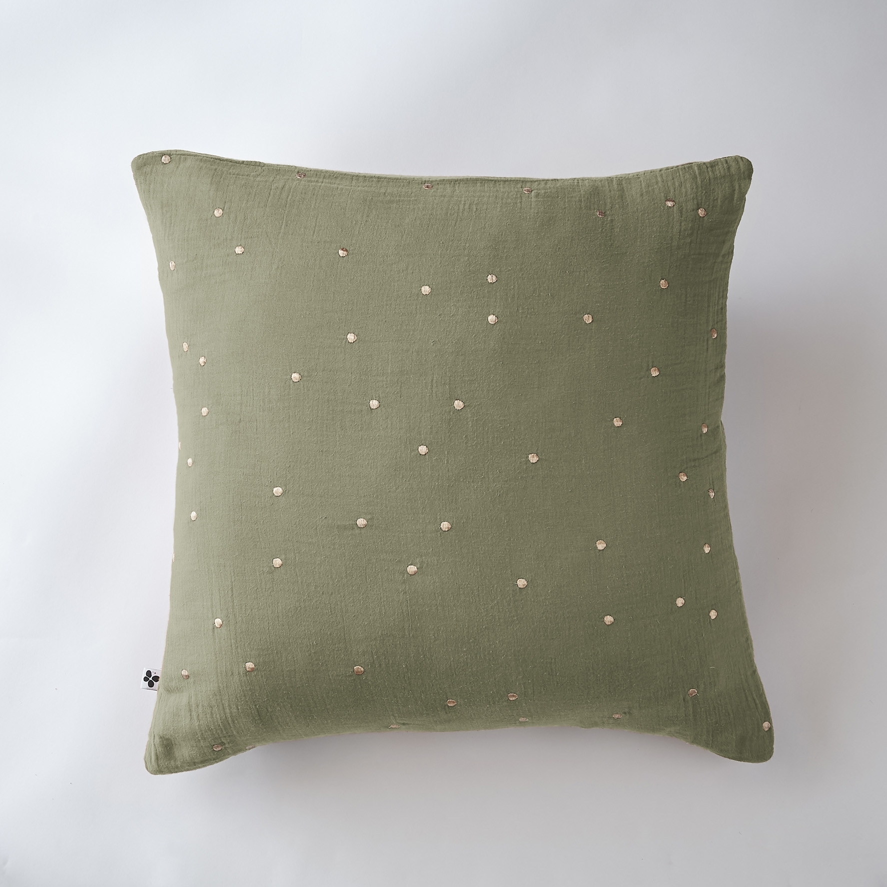 Taie d'oreiller gaze de coton brodée fil or 60 x 60 cm Gaia Chic Romarin