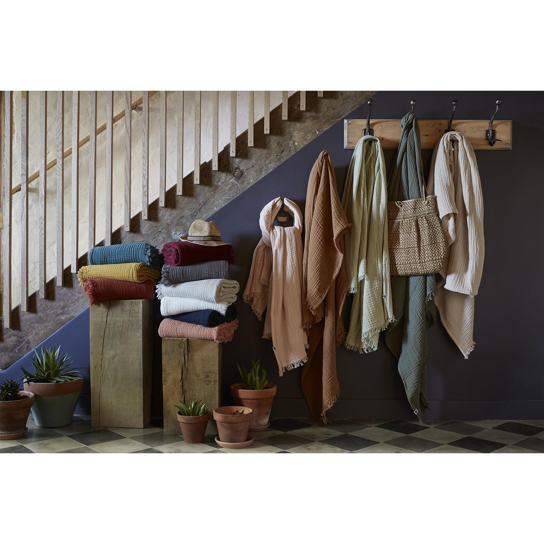 Apportez chaleur, style et douceur à votre intérieur avec ce plaid GAÏA Bleu Canard, confectionné en double gaze de coton 220 g/m². Sa texture légèrement gaufrée et son tombé souple en font un indispensable déco, parfait pour un canapé, un fauteuil ou en bout de lit.