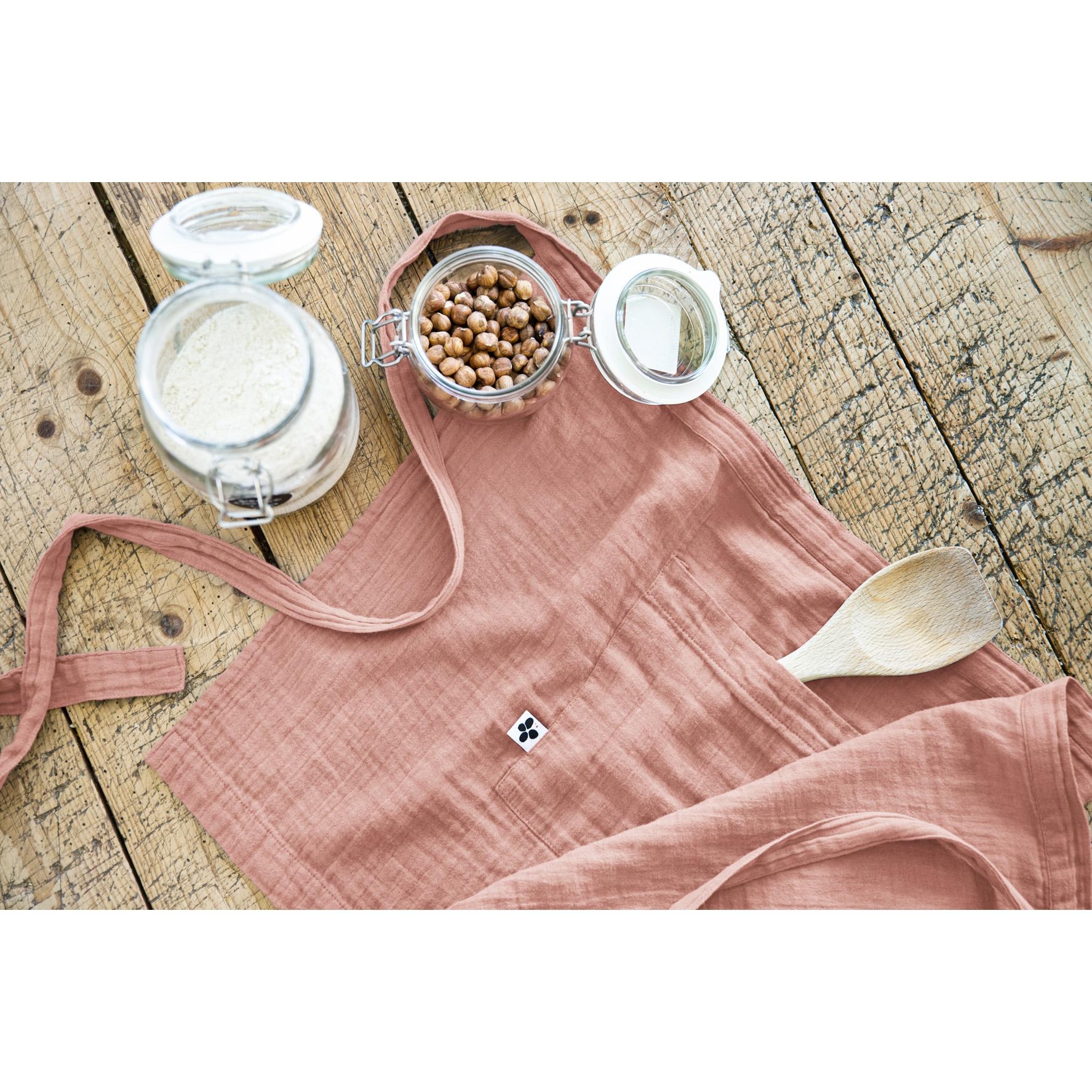 Tablier Serveur 45 x 80 cm – Gaze de Coton Unie GAÏA Rose pêche