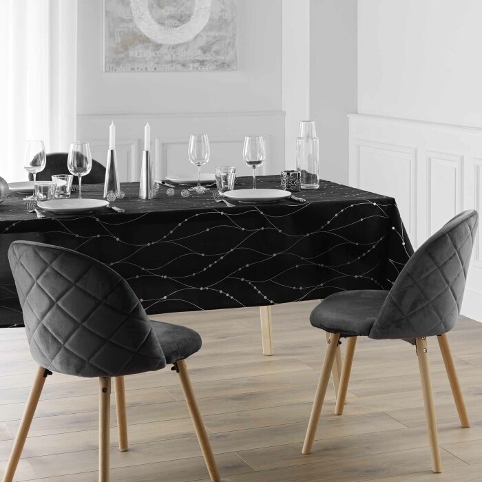 Nappe rectangle 140 x 240 cm microfibre imprimee metal. firmament Noir/argent