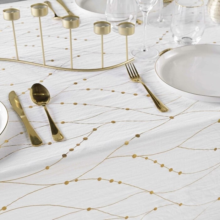 Nappe rectangle 140 x 240 cm microfibre imprimee metallisee firmament Blanc/or