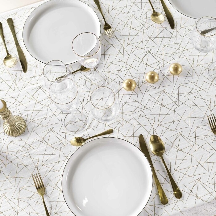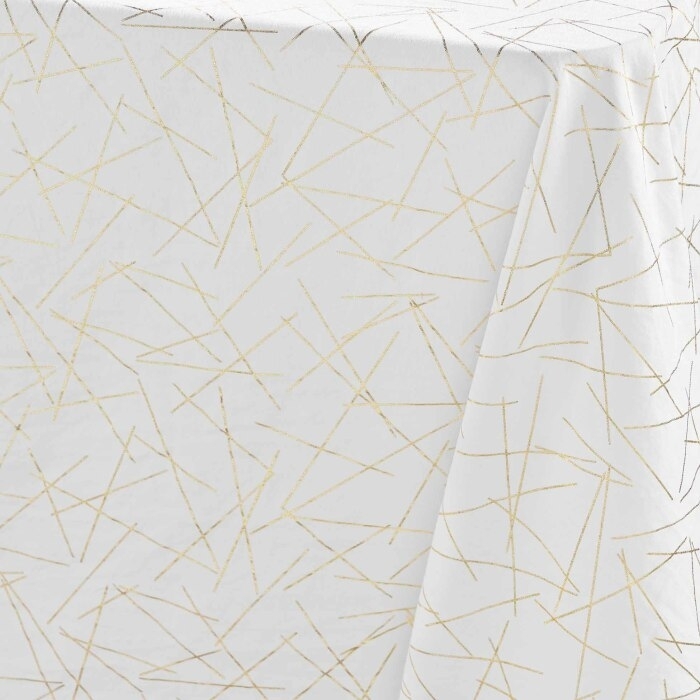 Nappe rectangle 140 x 240 cm microfibre imprimee metallisee mikado Blanc/or