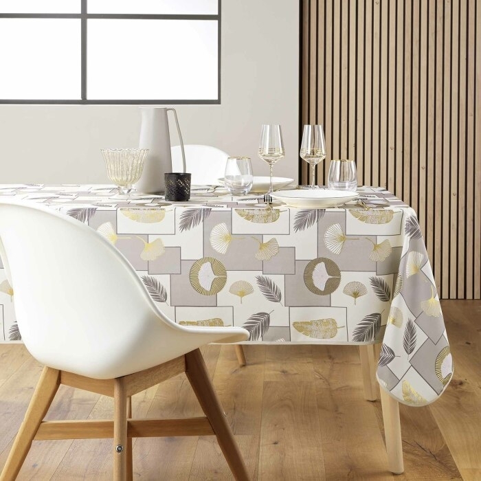 Nappe rectangle 145 x 240 cm polyester imprime metallise natane Naturel