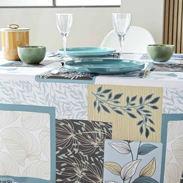 Nappe rectangle 150 x 240 cm polyester imprime faya Sauge