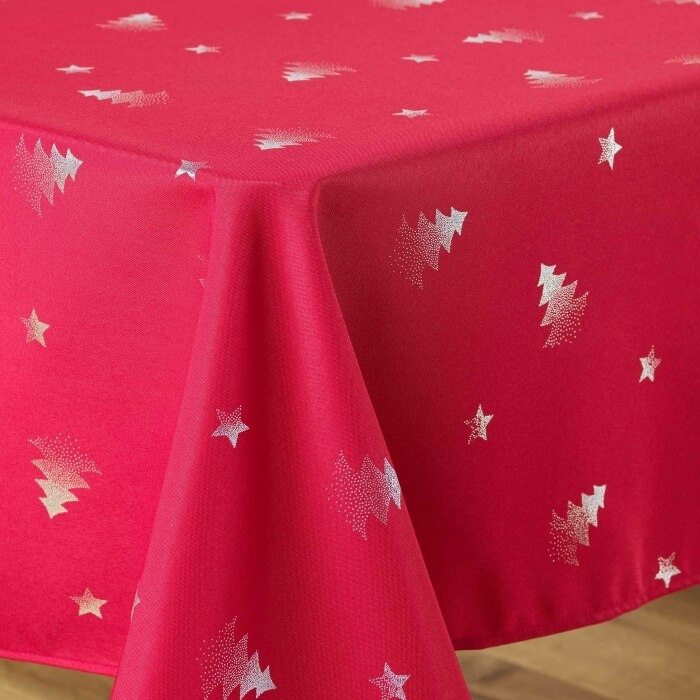 Nappe rectangle 150 x 240 cm polyester imprime metallise sapin Rouge/argent