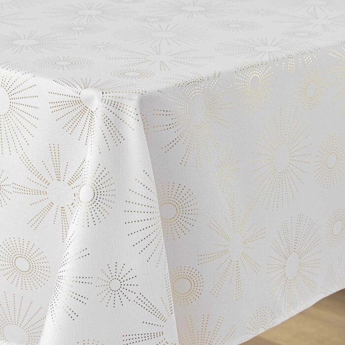 Nappe rectangle 150 x 300 cm polyester imprime metallise pampille Blanc/or