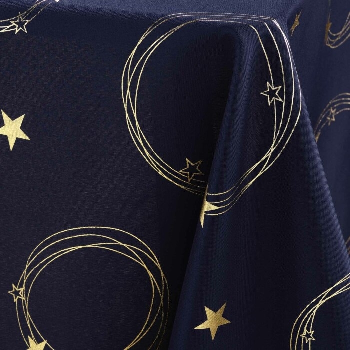 Nappe rectangle 150 x 300 cm polyester imprime metallise star Marine/or