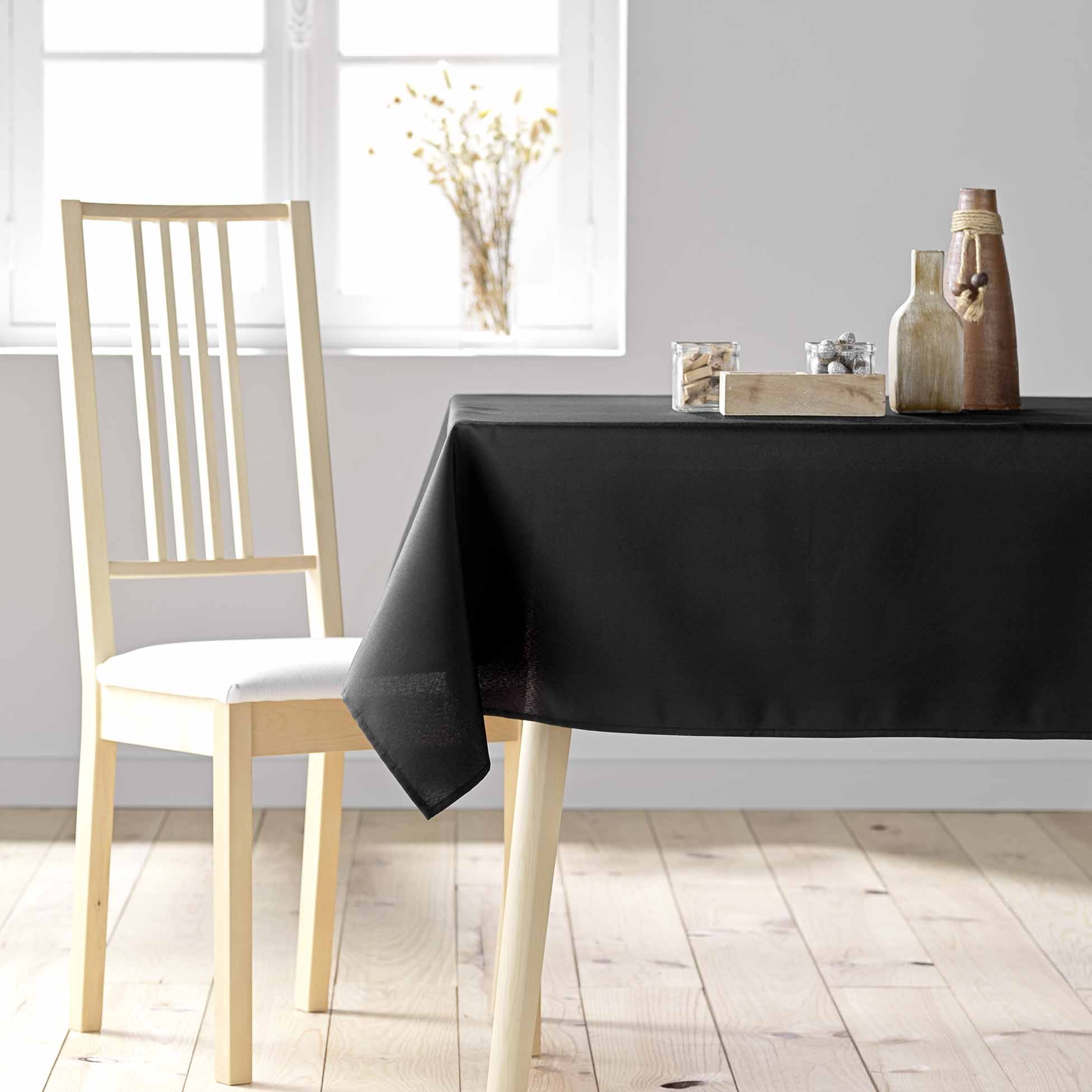Nappe rectangulaire 140 x 250 cm – Polyester uni – Essentiel Noir