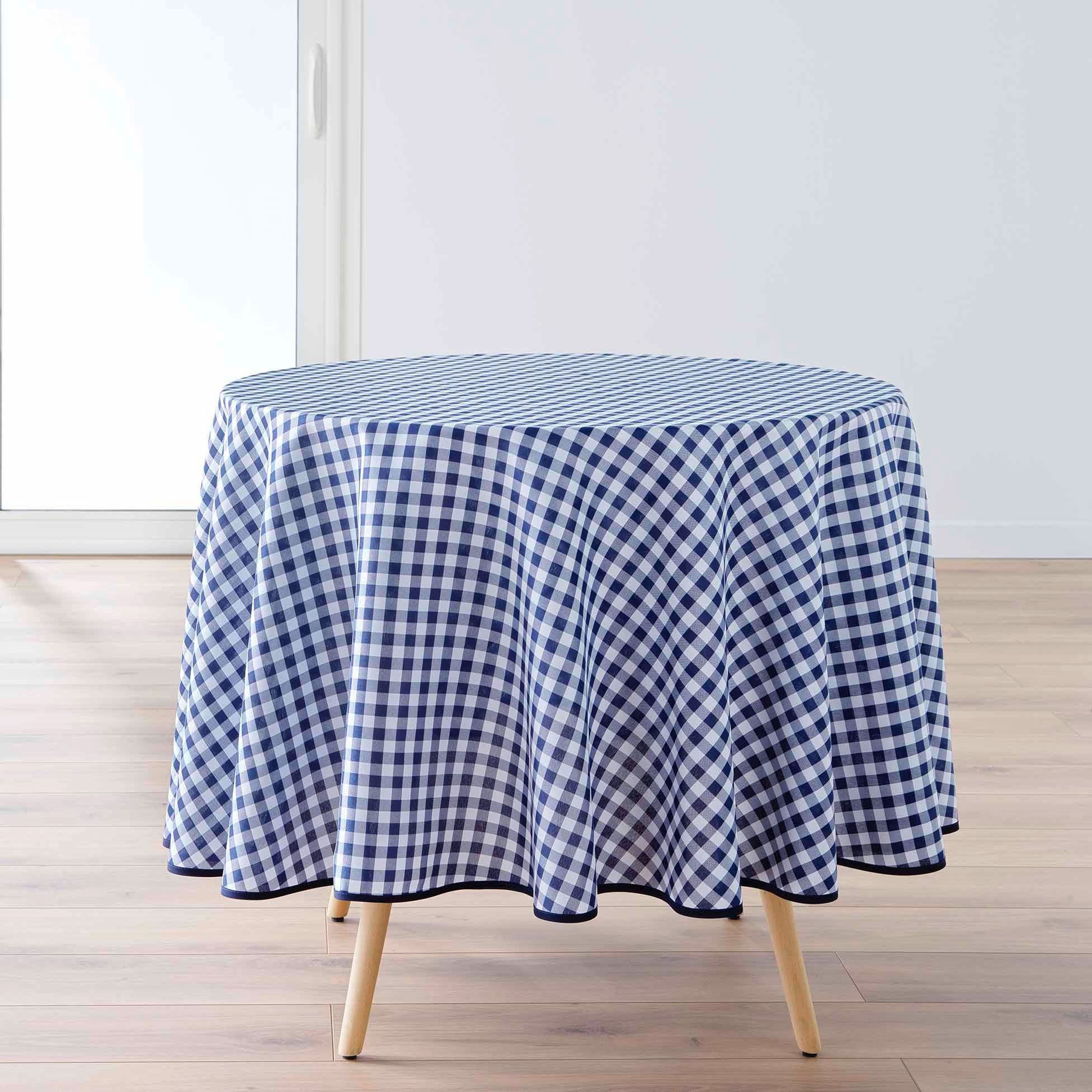 Nappe ronde Ø 180 cm – Polyester fils teints Vichy Bleu