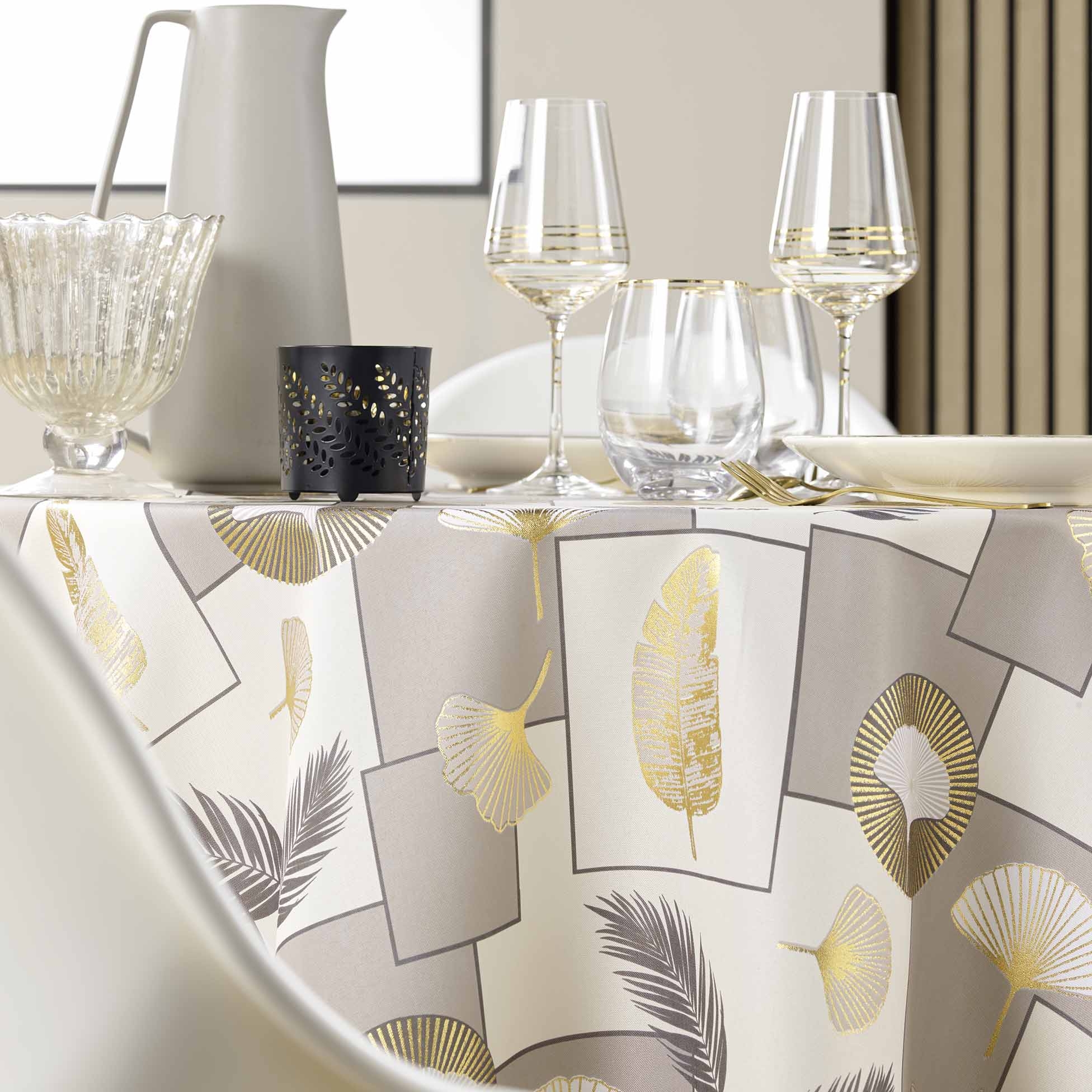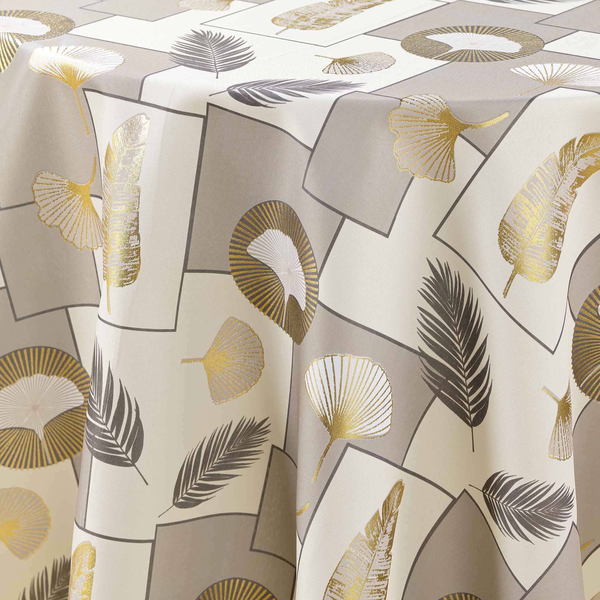 Nappe ronde Ø 180 cm – Polyester imprimé métallisé NATANE Naturel