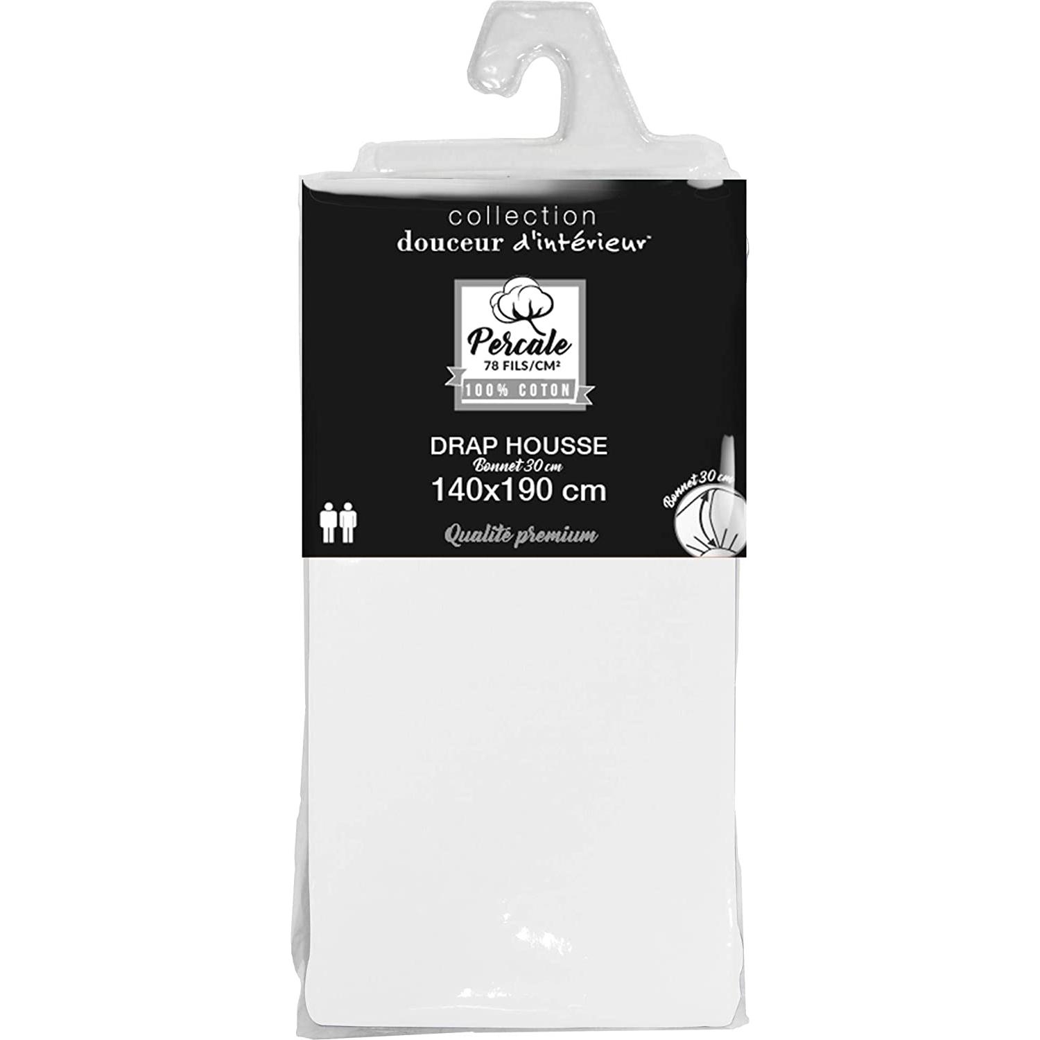 Lot de 2 Draps housse blanc 140 x 190 cm en percale bonnet 30 cm