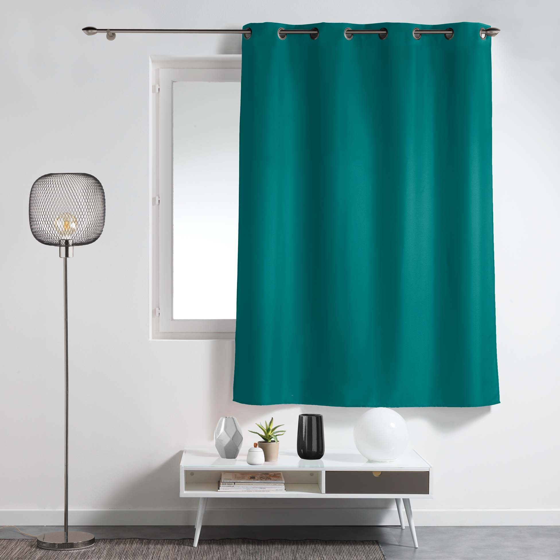 Lot de 2 rideaux 140 x 180 cm – Petite hauteur – Uni polyester – ESSENTIEL Bleu Paon