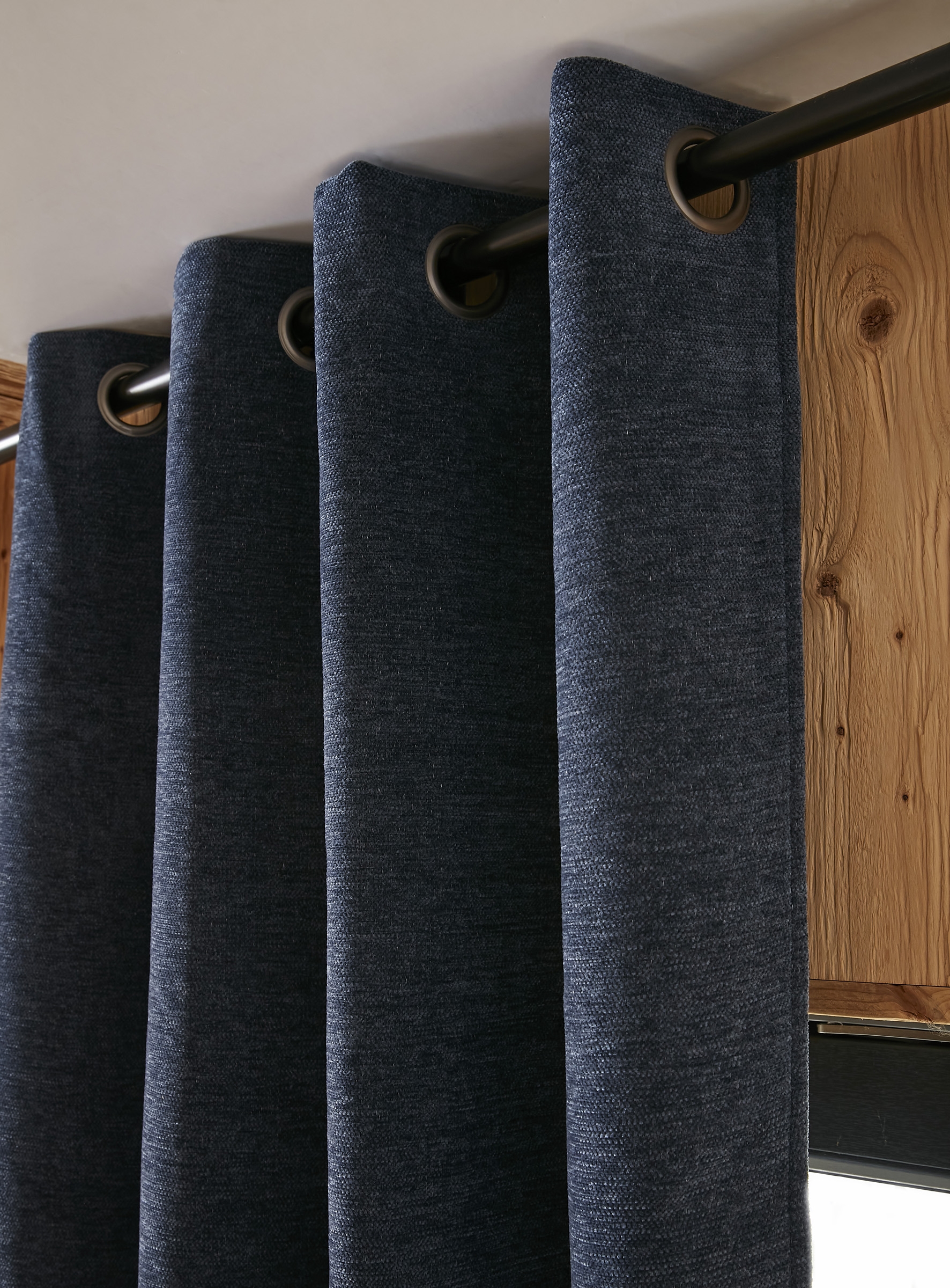 Ses œillets métalliques canon de fusil garantissent une installation rapide et un tombé fluide et élégant.
