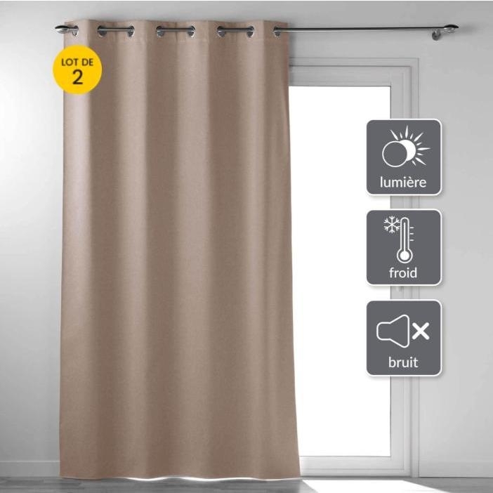 Lot de 2 Rideaux a oeillets 135 x 260 cm 100% occultant thermique uni occultissime Noisette