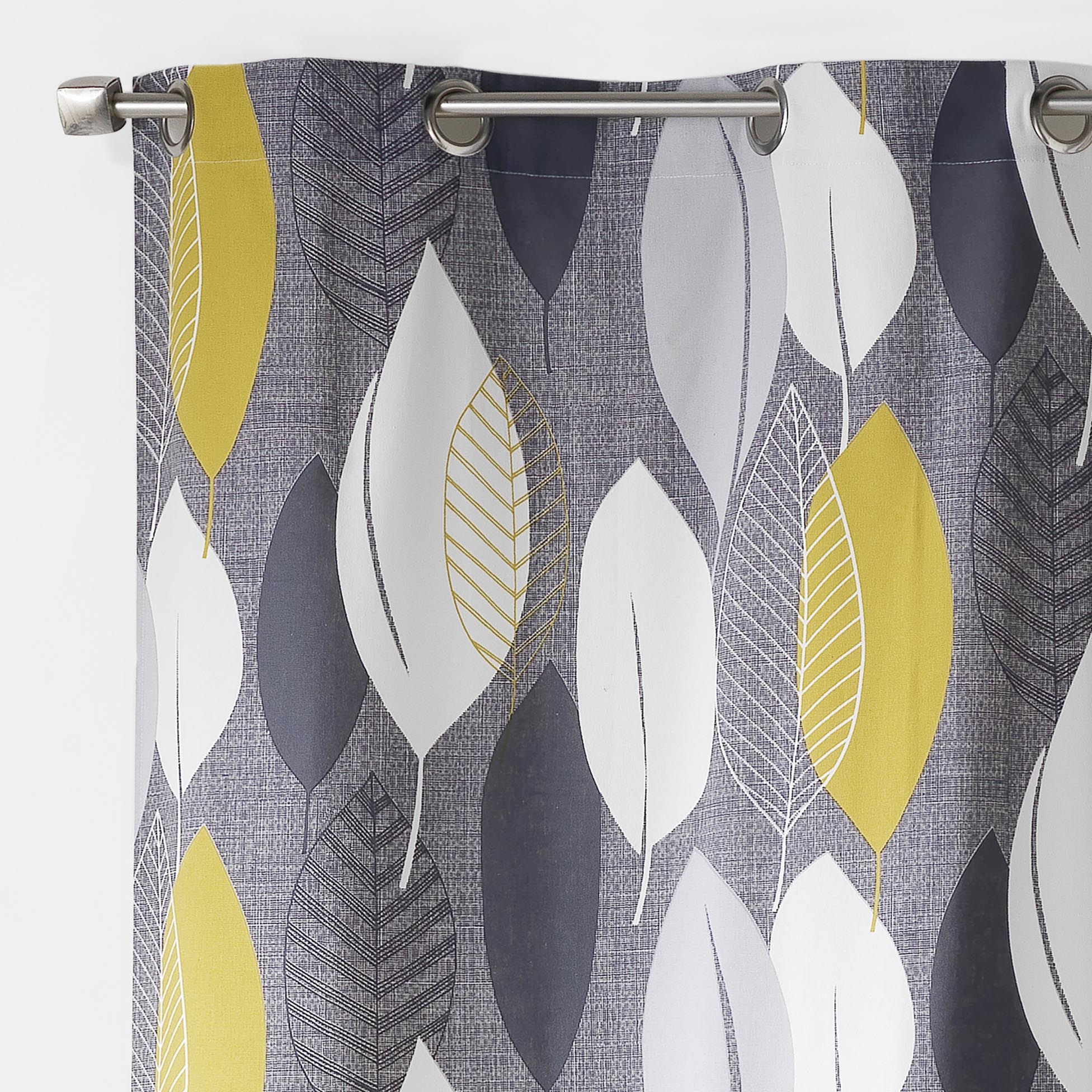 Lot de 2 rideaux à œillets – 140 x 240 cm – coton tamisant imprimé Leafy – jaune