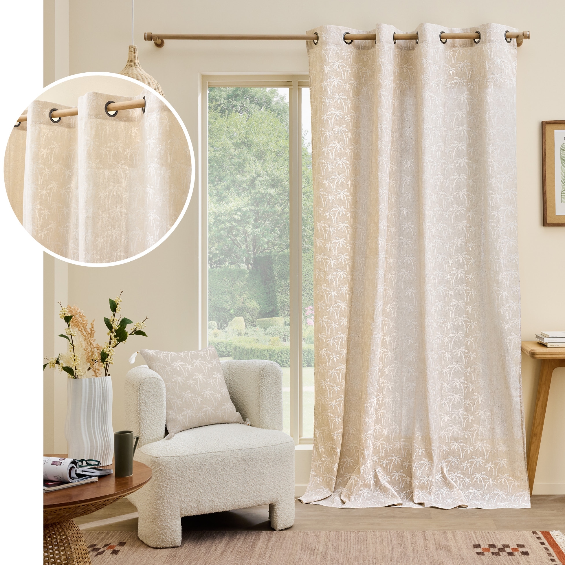 Lot de 2 Rideaux a oeillets 140 x 240 cm polycoton Imprime Palmier Saharis