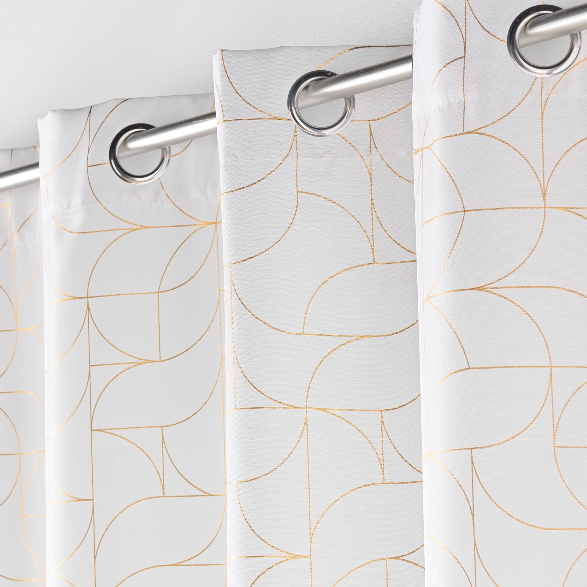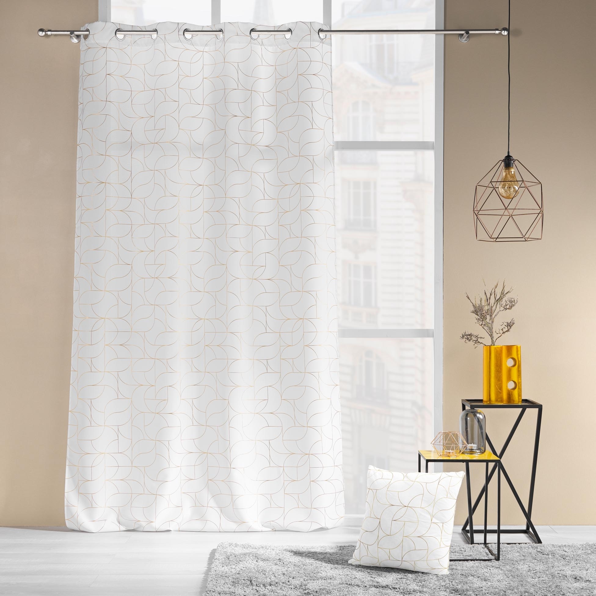 Lot de 2 rideaux a oeillets 140 x 260 cm polyester imprime metallisé Louxor Blanc