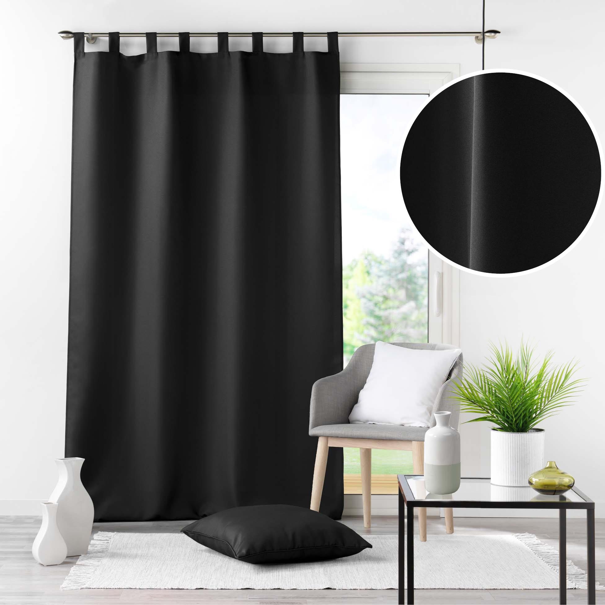 Lot de 2 Rideaux à Passants 140 x 260 cm – Uni Noir – Essentiel